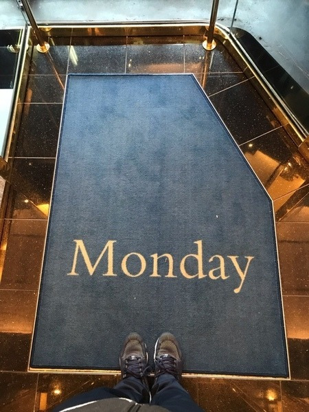바뀌었나? 그렇지 월요일이다. 며칠 지나면서 알게 된 것이 있다. 크루즈를 타고 바다 위 제한된 공간에서 아무 신경 쓸 것 없이 마음대로 먹고 쉬고 있다 보면 날짜나 시간 감각이 둔해진다. 그래서 엘리베이터 바닥이 전해주는 요일 정보는 굉장히 유익하다. 시간이 가고 있다는 것을 확실하게 상기시켜 준다. 새벽에 교체해 놓았을 크루에게 속으로 땡큐를 전하며 하루를 시작한다.