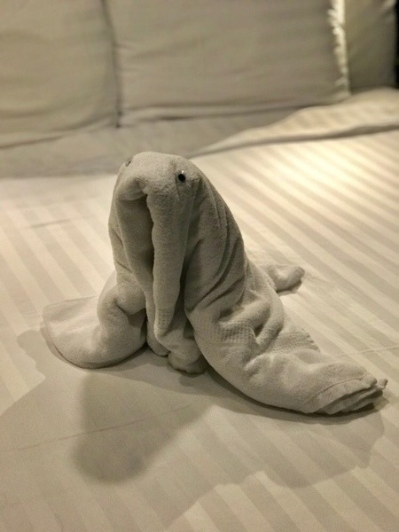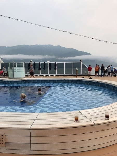 하루를 마치고 돌아오니 오늘은 물개 타월이 우리를 기다리고 있다. 아! 이 사람들 센스를 어쩔 건가 정말. 너무 귀엽고 정겹다. 밤 11시가 넘은 시간에도 주노의 밤은 어둡지 않다. 말로만 듣던 백야인가 보다. 위도가 북쪽이라 대낮처럼 환하지는 않지만 자정이 다 되어가는 시간이 한국 저녁 7시 30분쯤의 느낌이다. 신기하다. 주노 사람들에게 암막 커튼은 필수 아이템이겠다. 주노 항에는 우리가 탄 유로담 말고도 서너 대의 배들이 정박하고 있다. 앞에 우리보다 작은 크루즈선이 보인다. 배들이 차례대로 항구를 떠난다. 저 작은 크루즈가 움직이고 시간이 지나니 우리 배가 마지막으로 주노를 떠난다. 또 항해는 계속된다.