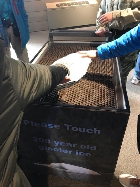 전망 좋은 곳에는 항상 비지터스센터가 있다. 그곳에는 실내 전망대와 뮤지엄, 오디토리움 그리고 기프트샵이 있다. 이건 미국 어디 가나 국화빵처럼 똑같다. 미국은 카피 앤 페이스트의 나라니까. 맥도널드의 나라 미국임을 잊지 말자. 센터 안에는 얼음 조각이 놓여 있고, 방문객들이 마음대로 만져볼 수 있다. 잠시 만져 본 이 얼음이 무려 200년 된 얼음이란다. 헐. 엄청 추울 것이라고 잔뜩 겁먹고 찾아간 알래스카는 여름이라 춥지 않고 청량하고 시원한 날씨였다. 반팔티에 플리스 잠바 정도면 기분 좋게 다닐 수 있다.