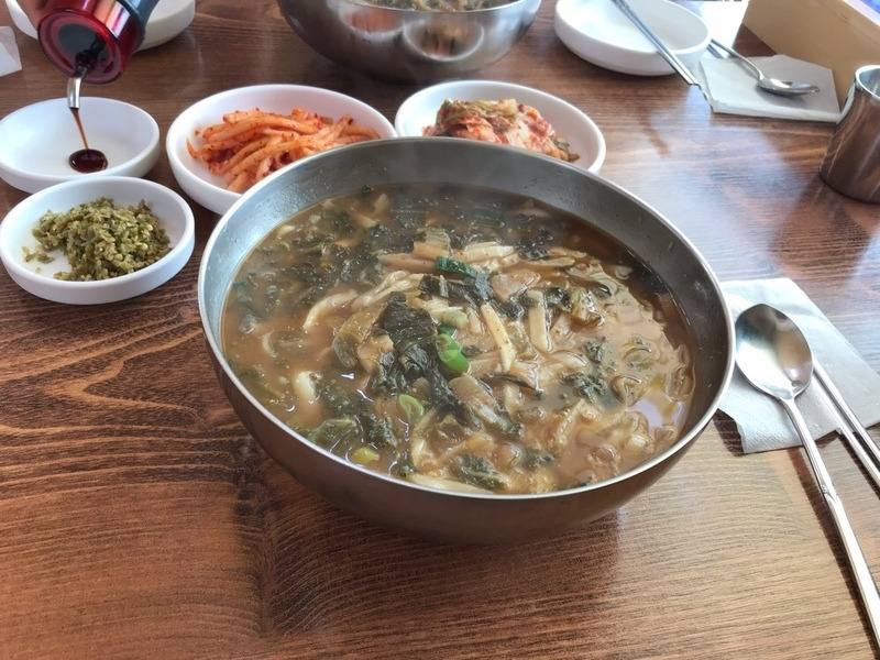 백종원의 3대 천왕에 소개되어 유명해진 식당. 방송 후 손님이 몰려 메뉴도 제한하고 했으나 이제는 정상으로 돌아온 듯하다. 원래 방송 나가고 두어 달 있다 가면 다시 원 위치한다고들 한다. 음... 두어 달 만에 잊힌다니... 좀 슬픈데?... 토요일 오전 11시 24분 현재 한산하다. 직접 담근 된장과 들깨, 시래기 등이 어우러진 국물 맛이 진근하고 부드럽다. 한마디로 맛있다. 맛이 과하지 않고 은은하니 좋다. 면발도 내가 좋아하는 부들부들 신도칼국수(대전 소재) 스타일이다. 옛날 면들은 다 이랬는데 요새 면들은 왜 이리 쫄깃쫄깃한지... 나는 오동통 쫄깃면보다는 펑퍼짐 부드러운 면이 좋다. 춘천 오면 들러야겠다.
