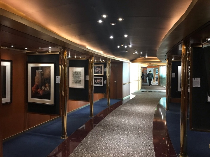 오늘은 종일 배에 머물며 빙하를 보는 날이었다. 실컷 빙하를 보고 사진 찍고 하다 보니 그렇게 하루가 갔다. 저녁 식사하러 가는 길에는 갤러리 공간도 있다. 크루즈 선에는 화가, 사진가, 마술사, 연주자 등 문화 관련인들이 탑승한다. 그들은 연주회, 전시회, 쇼 등 다양한 프로그램을 제공한다. 그러니까 크루즈 기간 동안 찾아가는 문화체험 서비스를 제공하는 것이다. 생각보다 다양한 프로그램을 운영했고, 많은 사람들이 관심 있는 분야에 참여하고 있었다.