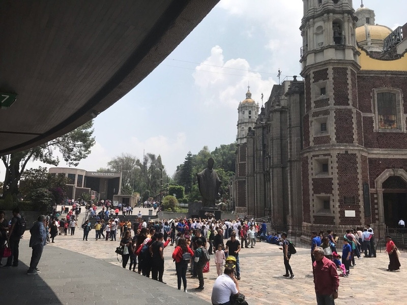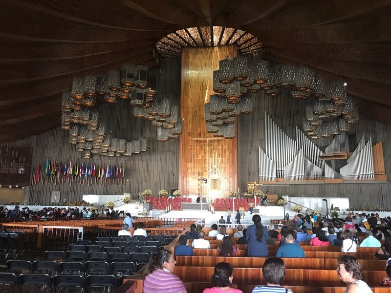 소칼로 광장 방문을 마치고 기적의 성당이라고 알려져 있는 과달루페 바실리카 성당으로 갔다. 가서 보기 전까지, 이 성당이 이렇게 유명한 성당인 줄 몰랐다. 이 곳은 세계 3대 성모 발현지 중 하나로, 남미 모든 가톨릭 신자들이 모여드는 성지다. 어느 나라건 가톨릭 신자들에게는 필수 방문지다. 성모 발현 스토리는 이렇다. 1600년경 디아고라는 청년이(여기는 이름이 다 디아고다) 성당에 오다가 산길에서 성모를 뵙고, 그 자리에 성당을 지었다는 것이다. 처음에 지은 돌 성당으로는 엄청난 규모의 방문 신도들을 감당할 수 없어 바로 옆에 큰 성당을 하나 더 지었다. 새로 지은 성당은 내가 본 성당 중 가장 현대적인 내외부를 가지고 있다. 개신교회라 해도 전혀 어색하지 않을 만큼 모던하다. 실내 데코레이션에서 성모상만 생략하면, 완전히 교회와 같다. 외관은 흡사 여의도 순복음교회 같은 모양이다.