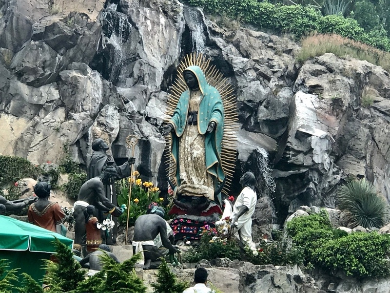 성당 광장을 돌아 나오면 조그만 성당이 하나 보인다. 이곳이 노예들이 예배를 드리던 교회이다. 스페인 백인들은 멕시코를 침략하고 원주민들을 노예로 부렸다. 그리고 그들에게 ‘나쁜 자선’을 베풀었다. 너희들끼리 여기서 신앙생활을 하라고... 백인들의 침략사와 노예의 역사를 볼 때마다 슬퍼진다. 인간은 어찌 이리도 잔인한지 모르겠다. 노예들의 성당을 지나면 동산 언덕바지에 세계 3대 성모 발현지를 기념하는 동상들이 서있다. 아주 인기 있는 포토스폿이다. 꽃들도 이쁘고 날씨도 좋다. 특이한 것은 성모의 얼굴색이 검다. 이목구비 생김새는 백인이고 안면 색은 현지인처럼 어두운 색이다. 종교의 토착화 사례를 잘 보여준다.