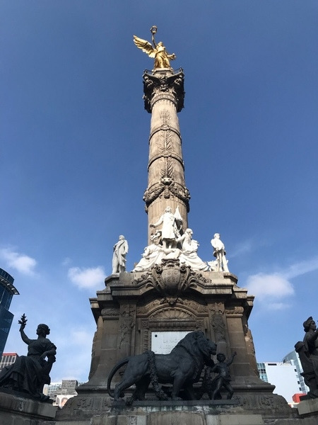 호텔에서 가이드 차량을 타고 호텔 근처의 멕시코 독립기념탑에 먼저 내렸다. 이 상징탑은 멕시코 독립을 축하하기 위해 프랑스가 만들어 선물한 것이라고 한다. 뉴욕의 자유의 여신상과 같은 아이템이다. 프랑스는 왜 그리 전 세계에 선물을 열심히 하는지... 역시 로맨티스트들. 재미있는 친구들이다. 맨 꼭대기에 승리의 여신 나이키(니케)가 날개를 달고 금빛 자태를 뽐낸다. 신도심 중앙에 위치하고 있는 랜드마크다. 서울로 치면 강남역 사거리 테헤란로 중앙에 있는 셈이다. 아침시간이라 그런지 사람도 없이 한산했다. 멕시코는 동상의 천국이라 할 만큼 로터리마다 동상들이 서있다. 멕시코인들은 동상 같은 조형물을 좋아한다. 오랜 시간 유럽 문화가 침투한 흔적이겠지. 물론 느낌은 당연히 스페인 풍이다.
