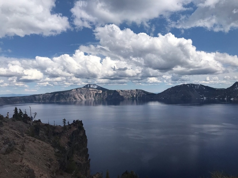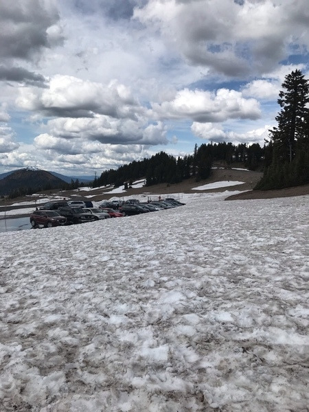 시간이 지나자 녹지 않은 만년설이 여기저기 쌓여있다. 정상에 오르면 눈앞에 컬데라 호수가 펼쳐진다. 대자연의 경이로운 장관이 잠시 말을 잊게 만든다. 그 규모도 엄청난데, 대략 백두산 천지의 5배 정도가 되지 않을까 싶다. 좌우지간 뭐든 크다 커. 물색이 신비 그 자체다. 사진으로도 담아가고 싶은데, 사진으로는 다 표현하지 못하는 것이 안타까울 뿐이다. 현지인들은 숙박하며 트레킹도 하고 여유로운 시간을 가진다고 한다. 부러운 일이다. 이곳은 오레곤이 자랑하는 멋진 자연경관 중 하나이다. 그래서 많은 사람들이 찾는다. 차 타고 정상까지!