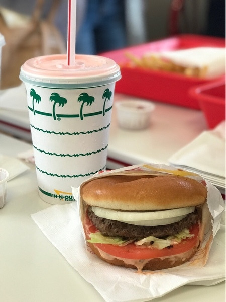 20년 만에 찾은 인앤아웃은 완전 유명 명소가 되어있었다. 널찍한 주차장이 차로 꽉 차 있었고, 매장 안에는 사람들로 시끌벅적 혼잡했다. 자리를 먼저 잡지 않으면 먹기가 힘들 정도였다. 우리나라 백화점 푸드코트 주말쯤 생각하면 되겠다. "나는 줄 설 테니, 너는 자리 잡어!" 역시 복잡한 곳에서 발하는 대한민국 사람의 현명함은 돋보인다. 역시 우리는 이런 곳에서 민첩하고 현명하며 일사불란하다.