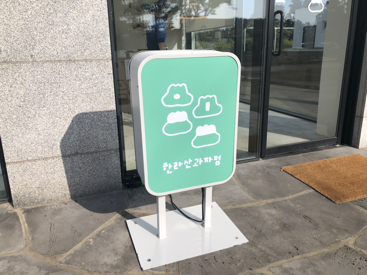 필요물품들을 구입하러 이마트에 가던 중 근처에 있는 한라산 과자점에 들렀다. 이쁘게 차려놓고 한라산 모양의 과자를 판다. 콘셉이 명확한 비즈니스다. 요즘 젊은이들의 비지니스 센스란~ 꼰대는 그냥 존경만 하자. 잘한다고 멋지다고 격려만 하자. 선물용 박스 구입이라 맛은 다음에 평가하기로 하자.