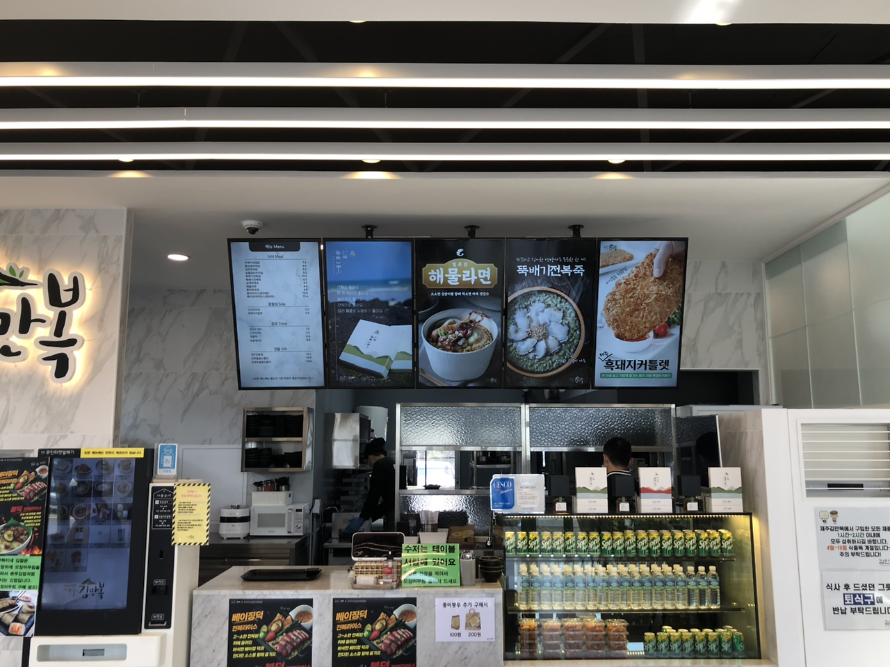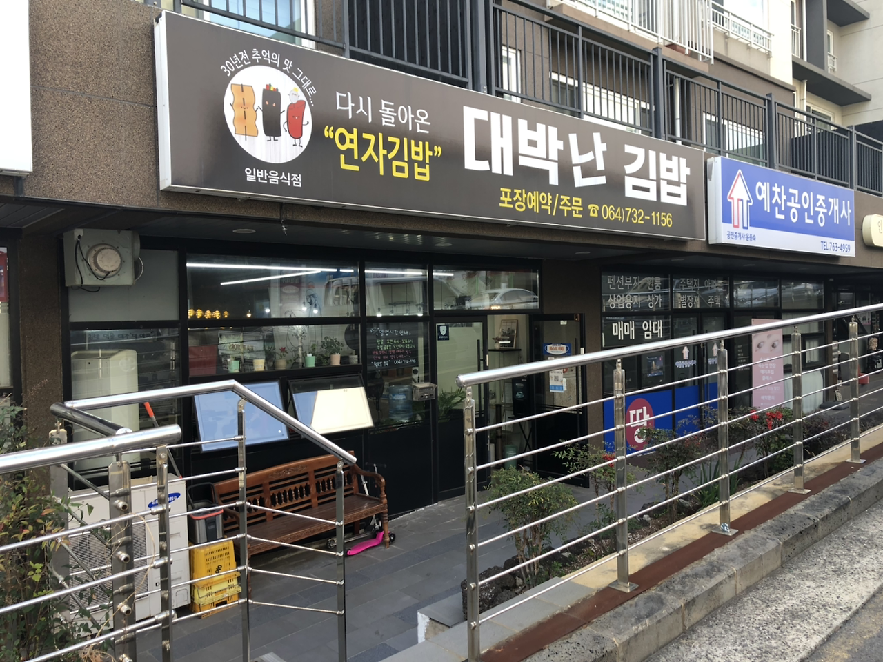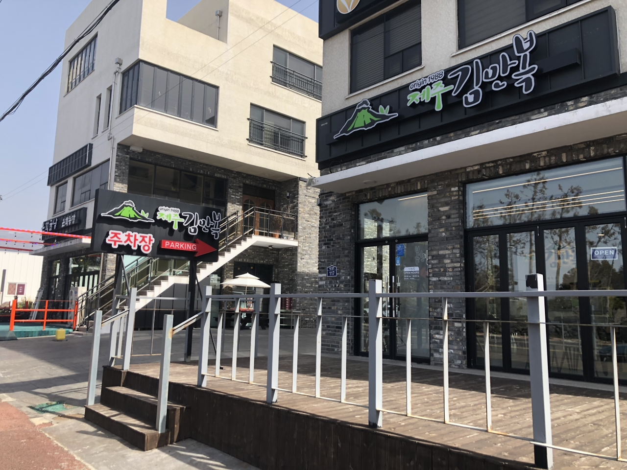 체크아웃 후 방주교회로 이동 중 간단히 아침 식사차 서귀포 신시가지 월드컵경기장 근처 김만복 김밥 서귀포점에 들렀다. 메뉴가 많아졌고, 포장박스 디자인도 쌔끈해졌다. 점점 기업화되어가고 있다. 오징어 초무침과 김밥의 조합이 맛있는데, 이 맛과 형식의 원형은 충무김밥이다.