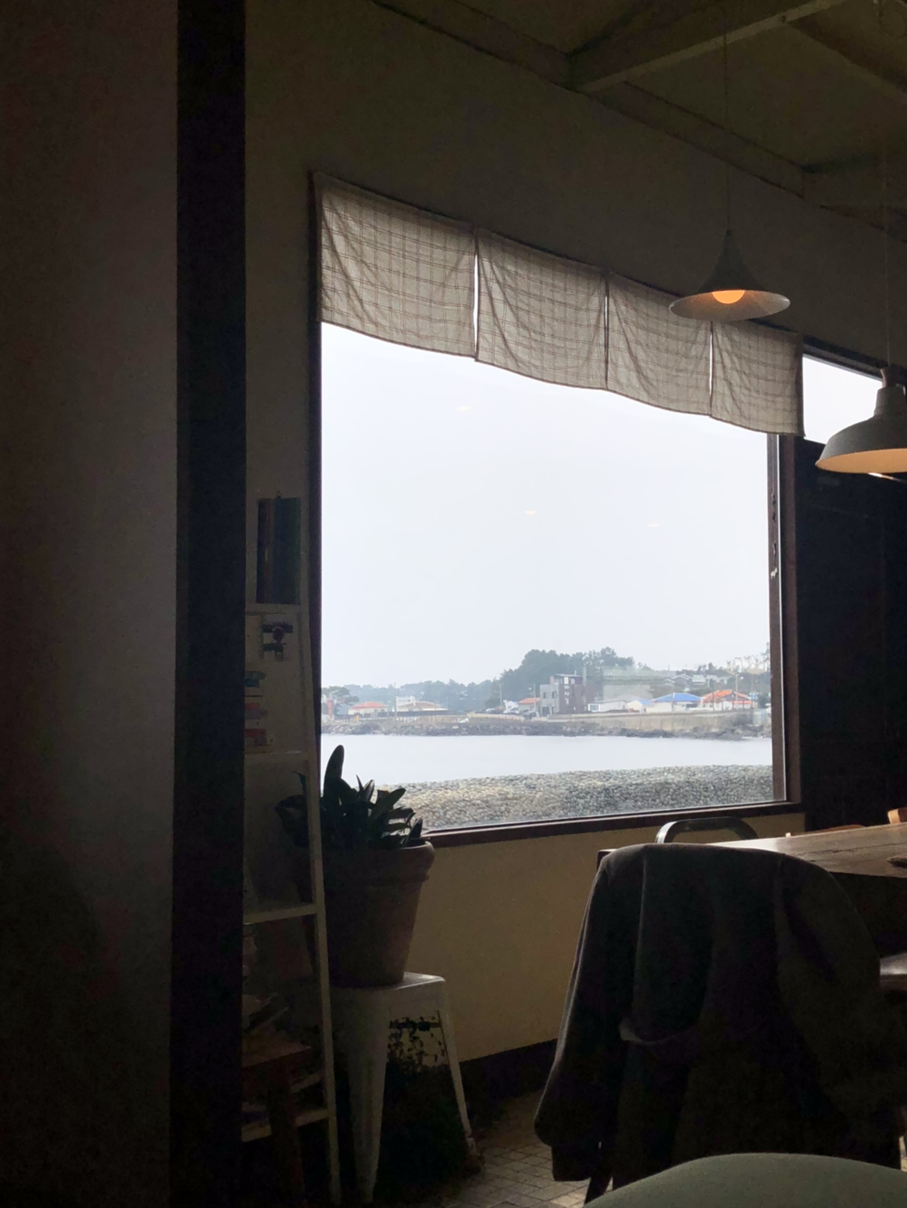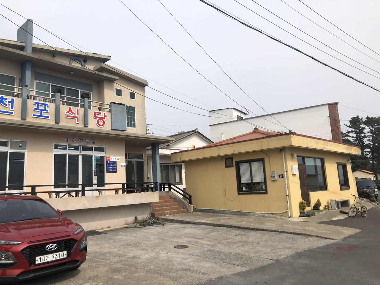 공천포식당 바로 옆 조그만 카페다. 우리는 지금까지 공천포식당 식사 후 옆에 있으니 들러 커피를 마셨다. 공천포의 시원한 바다를 그대로 품고 있으니 맛집 공천포 식당의 부록이랄까? 그런 느낌이었다. 그런데 오늘 보니 이곳도 ‘블루리본’을 세 개나 받은 곳이다. 오~ 카페 숑 도 나름 독자적 경쟁력을 갖춘 곳이었다. 왜 몰랐지? 커피와 와플을 디저팅 하며 예전 사진을 찾아보니 2017년 7월 7일에 B와 함께 찍은 사진이 있다. 그때와 벽 그림이 달라졌다. 나머진 그대로다.