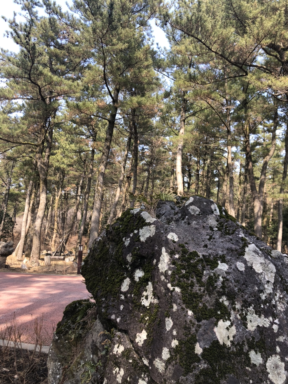 K가 피톤치드를 좀 마시고 싶단다. 그래서 올레길 5코스 쪽으로 가볼까 사려니숲길을 가볼까 하다가 갑자기 붉은오름 자연 휴양림을 가기로 했다. 이유는 조용하고 호젓할 것 같아서다. 잘 정비된 주차장에 주차하고 주차비와 3인 입장료 합쳐 오천 원 지불한다. 데크를 깔아 잘 정비해 놓은 숲길이 편안하다. 여러 시설과 숲길이 있는데 우리는 주로 입구 삼나무 숲에서 시간을 보냈다. 쭉쭉 뻣은 삼나무 숲 안에 들어와 있으니 딴 세상에 와 있는 것 같다. 시원하고 신선하다.