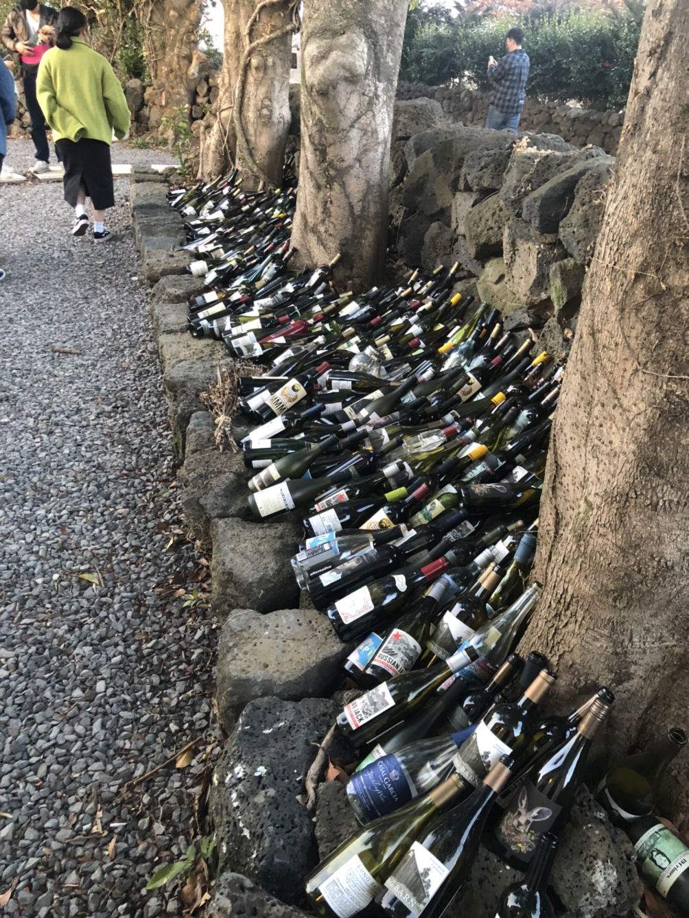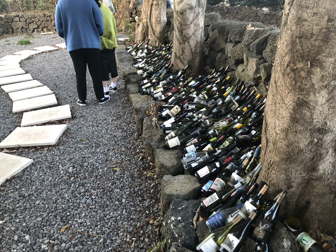마당 화단에는 빈 와인병들을 널어놓았다. 매일 나오는 빈병들을 이렇게 처치하는구나. 아니, 활용하는구나. 주어진 제한을 긍정적으로 해결한 좋은’ 디자인적 사고(생각)’의 사례다.