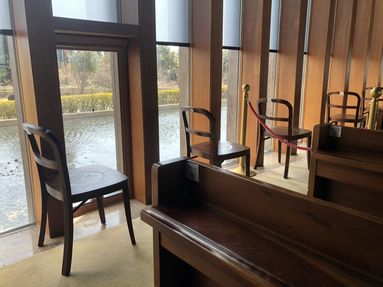 이 아름다운 건 전체적으로 나무와 유리와 쇠를 구성되어 있다. 단순 명료하면서도 방주라는 아이디어에 집중한 공간이 무척 매력적이다. 로비 천정에 누 자그마한 구멍을 뚫어 노아의 방주를 재현했다.