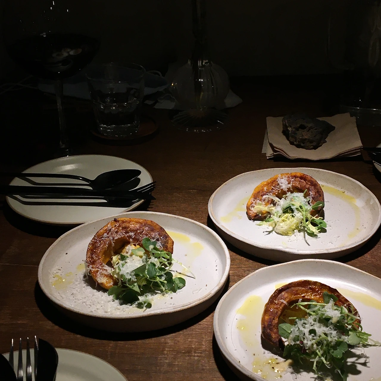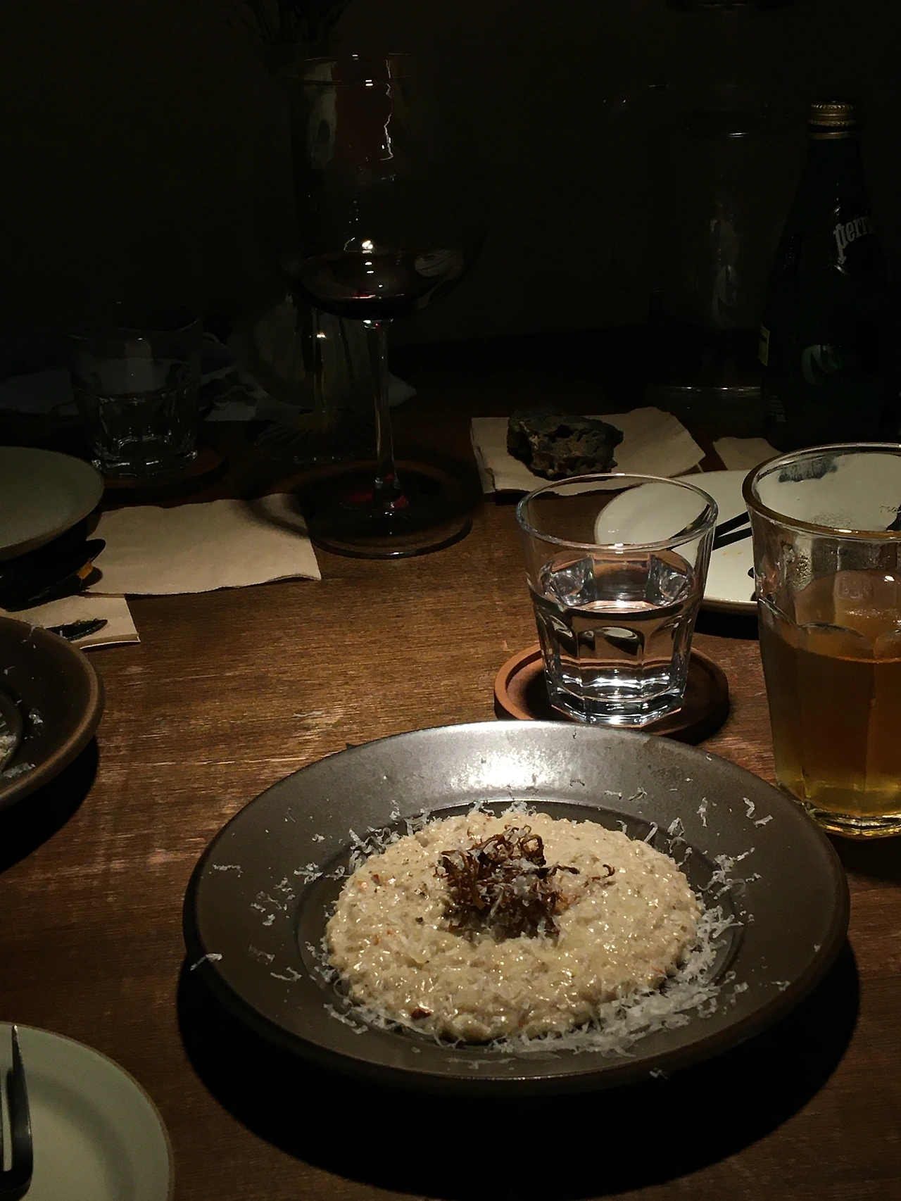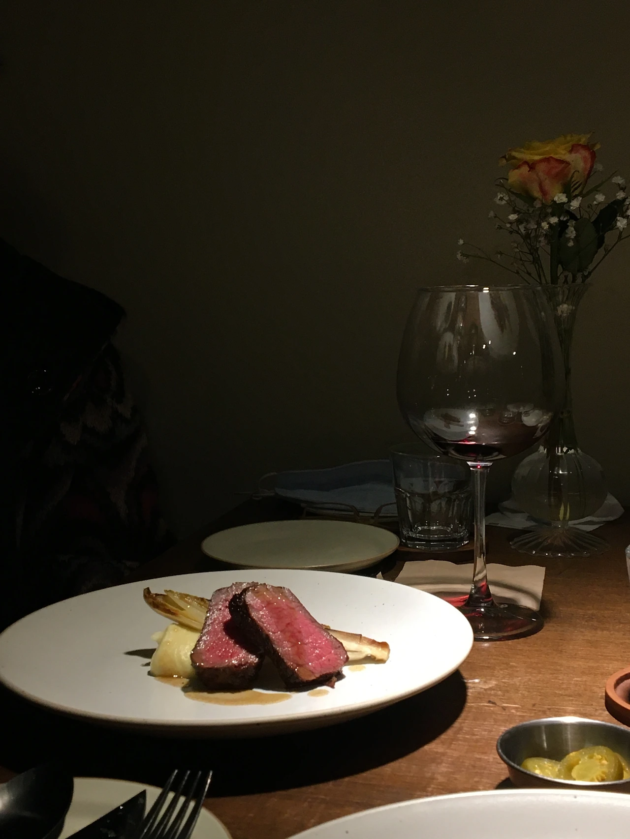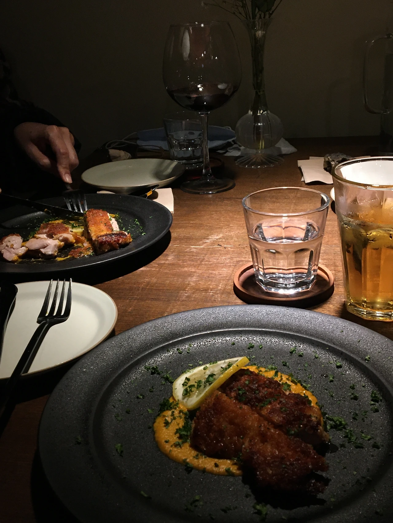 테이블 세팅 디테일도 눈여겨 볼만하다. 처음엔 나이프와 포그가 플라스틱인 줄 알고 깜짝 놀랐다. 검은 도금이 되어 있었기 때문이다. 그러면 그렇지. 냅킨에 올려놓은 돌은 검은 제주 돌이다 작은 세팅 하나에도 자신들의 생각을 담으려고 노력한 흔적들이 보인다. 이런 거 참 좋다. 나이스! 젊은 비즈니스맨들~