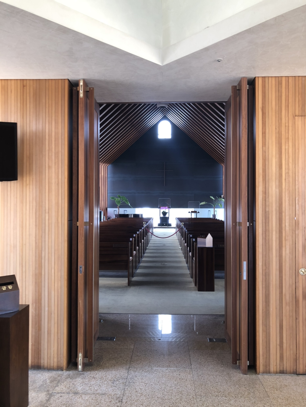 재일교포 건축가 이타미 준이 설계한 교회다. 노아의 방주를 콘셉으로 물 위에 떠있는 배 같은 형상을 하고 있다. 내부에 들어가 의자에 앉으면 마치 배에 앉아있는 듯한 착각이 든다. 콘셉이 형식과 형태를 결정한다는 디자인 방법론의 결정체다. 콘셉이 확고하면, 나머지는 그에 따르면 된다.