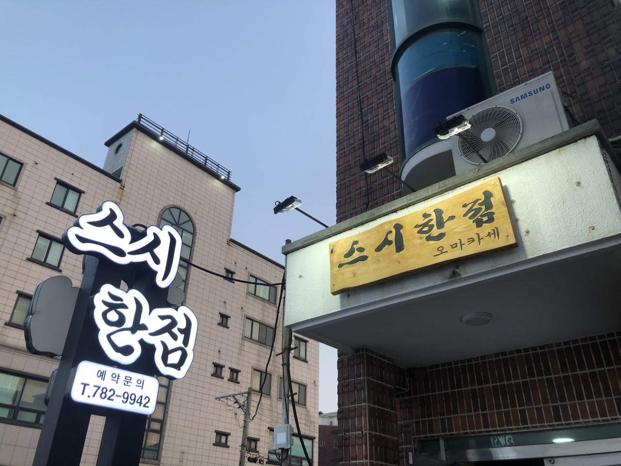 차량 인수 후 저녁 예약처인 스시 오마카세 식당으로 향한다. 식당은 함덕해수욕장 해변 번화한 곳 2층에 위치한 '스시 한점’이라는 곳이다. 서귀포 ‘하찌’가 금액이 올라 부담스러워졌다. 그래서 대안 일식 오마카세 식당을 폭풍 검색했고 결국은 이곳을 찾았다.