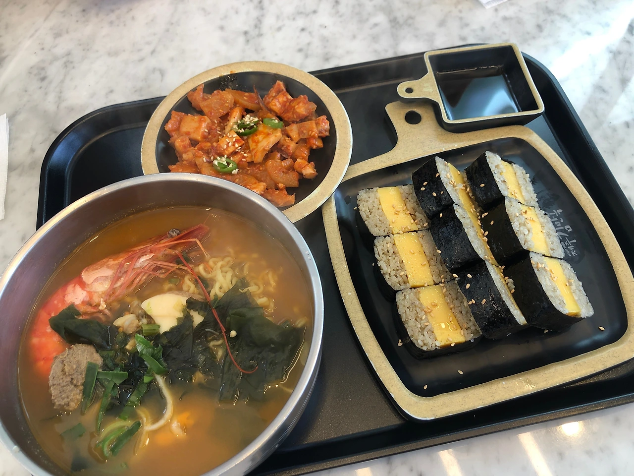 간단한 점심 요깃거리를 위해 톱텐 옆 상가 동네 김밥집에 들어갔다. 제주까지 와서 떡볶이와 라면이라니! 그런데 이것은 신묘한 작전이다. 저녁을 맛있게 먹기 위해 점심은 버리는 카드로 쓰는 거다. 2보 전진을 위한 1보 후퇴랄까?