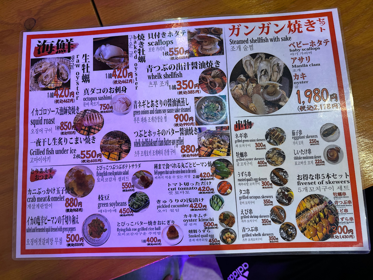 하는 수 없이 근처 다른 식당을 찾았고, 포장마차를 푸드코트처럼 한꺼번에 모아놓은 곳에 들어가 가장 조용한 코너에 앉아 저녁식사를 해치운다. 전철이 지나면 소음과 진동이 느껴지는 테이블에서 꼬치, 오징어 통구이, 계란말이 등 완전 맥주 안주 메뉴 이것저것과 구운 오니기리를 게눈 감추듯 후다닥 먹고 나왔다. 메뉴 한두 개에 맥주 놓고 고사 지내듯이 천천히 먹는 현지사람들과는 달리 후다닥 먹고 벌떡 일어나 계산하는 우리가 주인장에게는 천사로 보이자 않았을까. 매상도 1등 손님이 아니었을까 싶다.