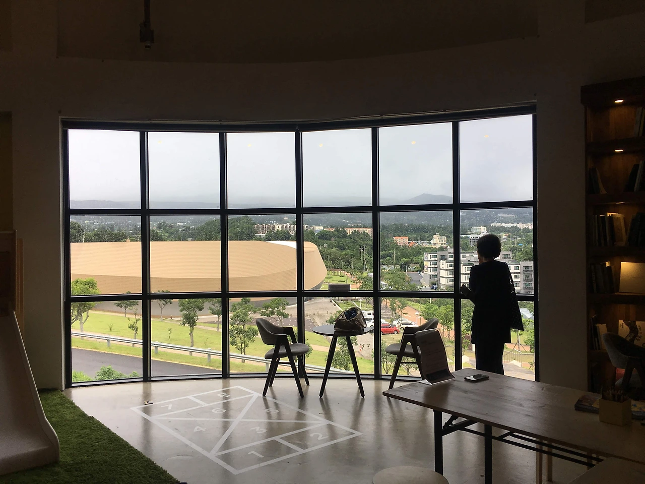제주의 동쪽 성산에 있는 랜드마크 건축물이다. 커피. 아이스라테, 감귤주스, 감귤 카스타드 크루아상을 먹으며 디저트 타임을 가지며 무더위에 떨어진 당을 보충한다. 대단한 건축물에서 보는 섭지코지의 풍광이 압권이다.