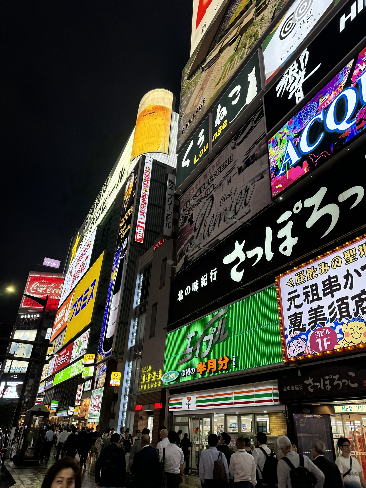 삿포로의 나이트 라이프를 담당하는 곳. 밤이 되면 온갖 네온이 불을 밝히고 근사하게 멋 낸 젊은이들이 모여든다. 늦은 밤까지 먹거리, 놀거리 등이 무한 제공되는 야간 스폿이자 최대 번화가이다. 서울의 홍대 앞이나 강남역, 뉴욕의 타임스퀘어 등의 역할을 담당하는 곳이다. 그런 지역들이 가지는 생태적 특성을 그대로 가진다. 합계 나이 246세 여행팀에게는 오래 머물고 싶은 곳은 아니다. 일본 다이소 한번 들어가 보고, 사진 찍고 후다닥 호텔로 귀가한다.
