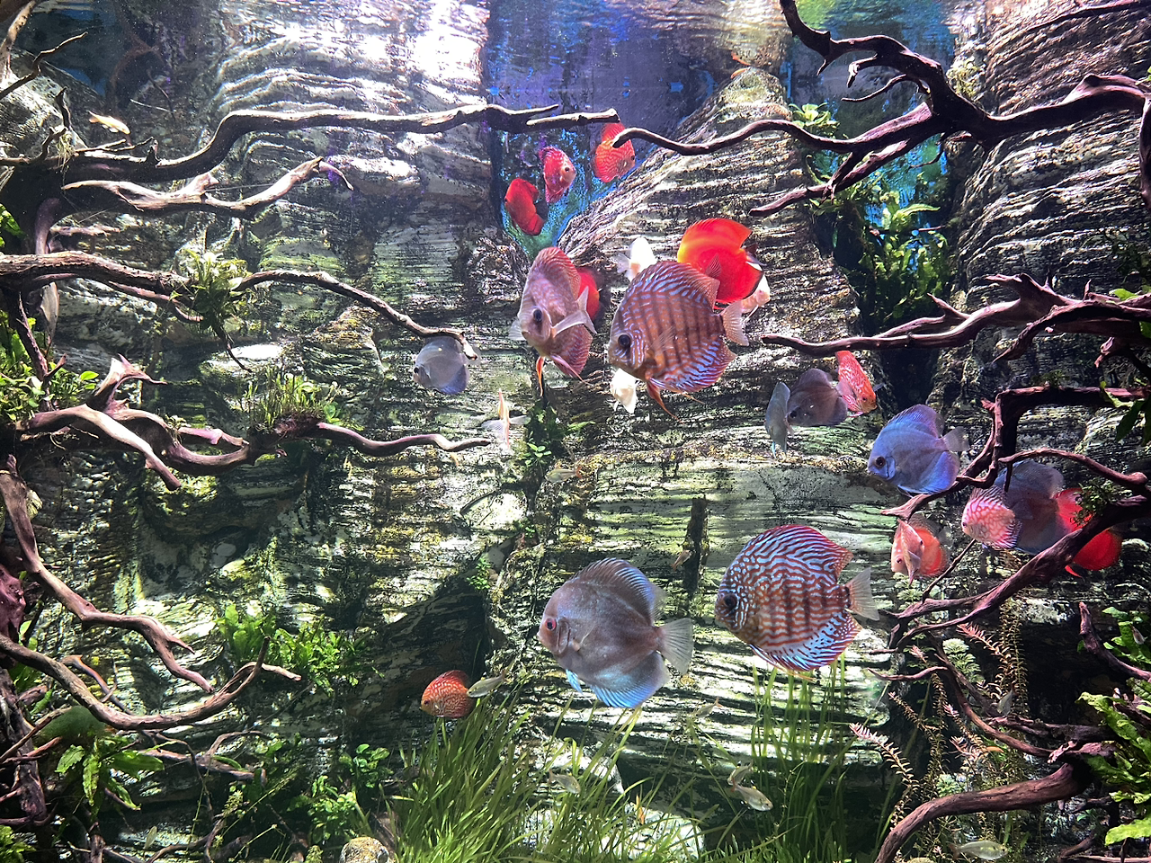 아쿠아리움 안에서 온갖 물고기와 수생 동물들이 그득하다. 갇혀있는 돌고래가 안쓰럽지만, 저 녀석은 이곳에서 태어났다고 하니 조금은 위안이 된다. 큰 바다를 모르니 그리워할 일도 없을 거다. 녀석 DNA 저 깊은 곳에만 그 바다가 있겠지... 이런 시설들을 올 때마다 즐거움과 신비함과 미안함이 섞인다. 이곳의 기억은 사진들로 대신한다.