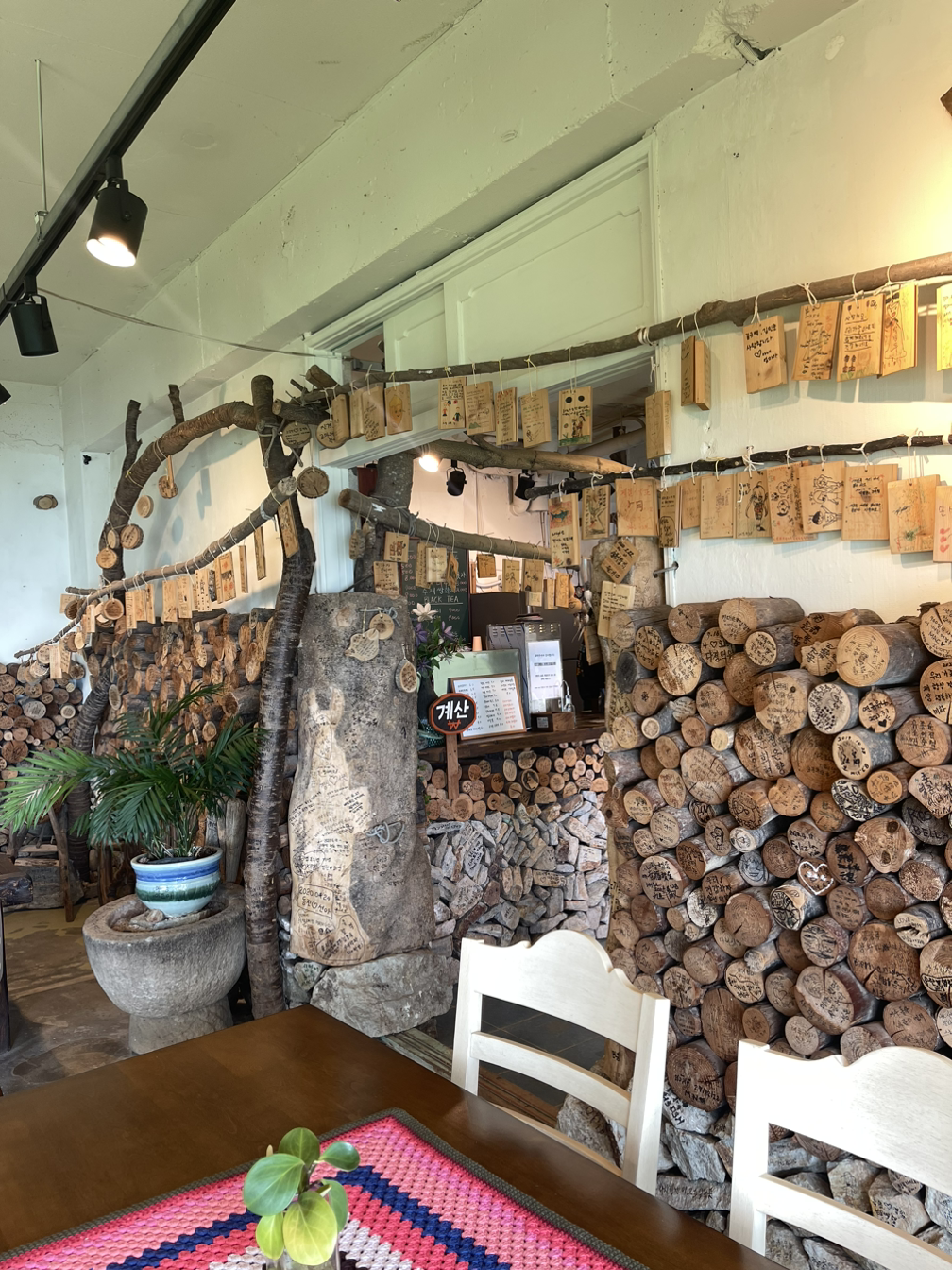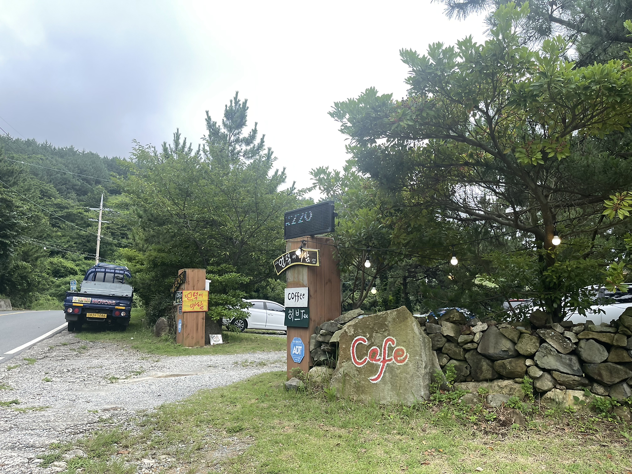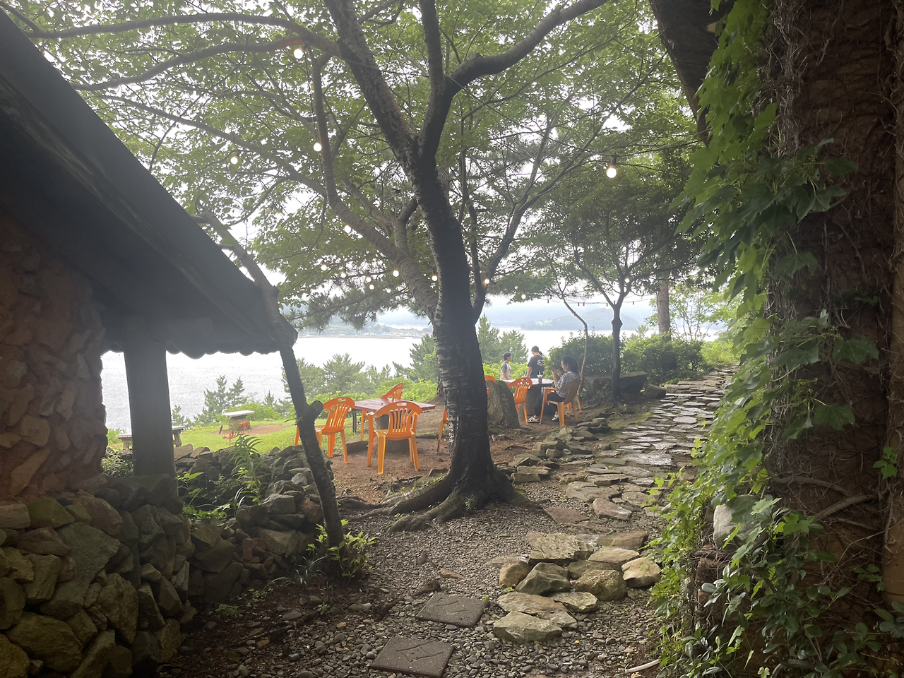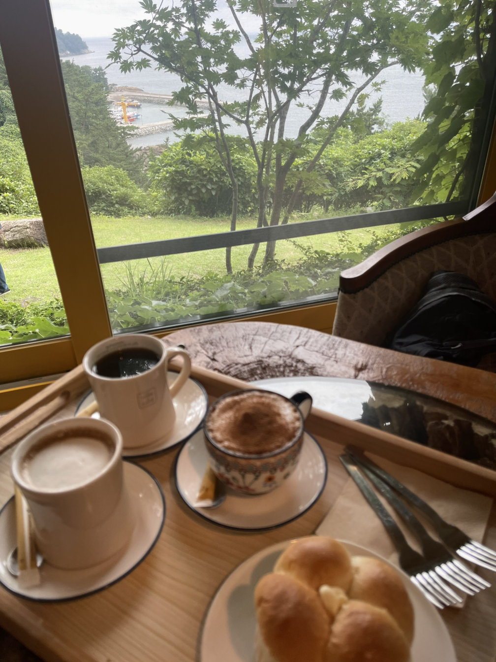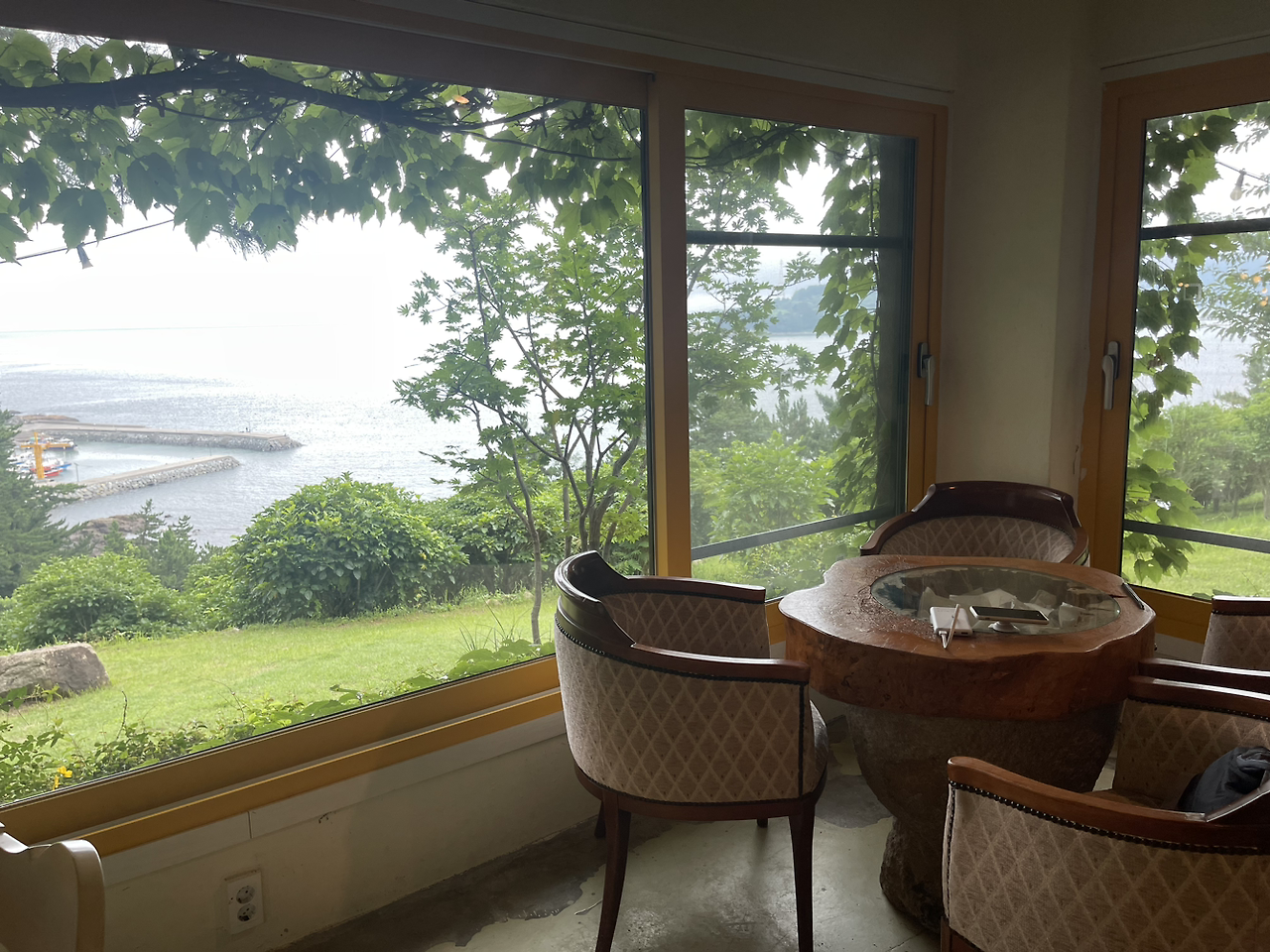 요즘 뷰 좋은 곳이면 우후죽순 생기는 새 건물 카페와는 다른 운치가 넘친다. 자연스럽고 편안하다. 나뭇가지 사이로 보이는 바다 뷰는 자연스럽기 그지없다. 이렇게 보는 바다는 웅장 하다기보다 겸손한 바다 같은 느낌이 든다. 공간 멋지고, 뷰도 좋고, 커피 맛도 좋고... 조금 전까지 혀가 호강했다면, 지금은 눈이 호강하고 있다. 이 근처로 오게 된다면 아와비 식사와 이곳의 커피 타임은 필수 코스가 될 것이 틀림없다.