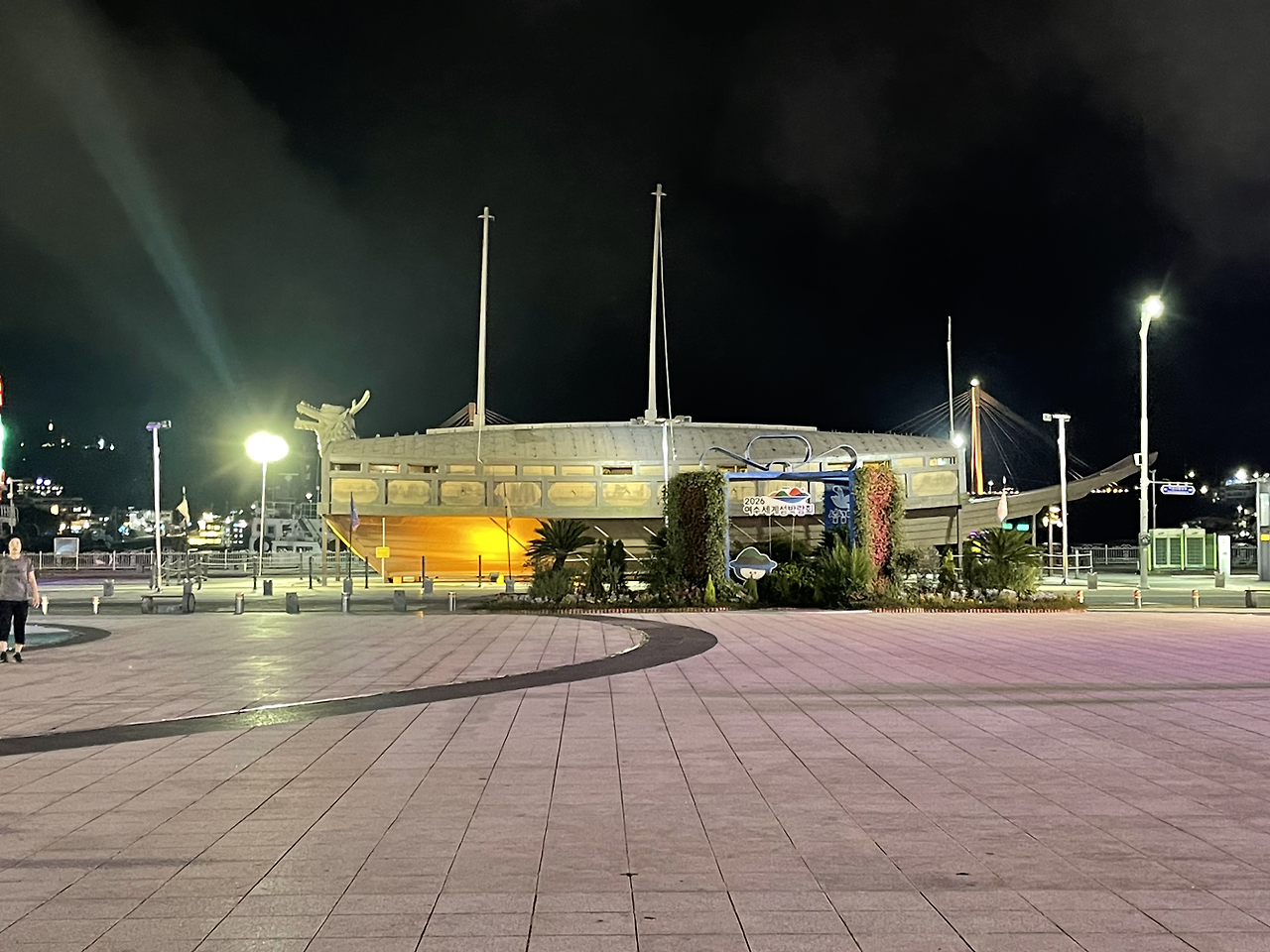 광장에 있는 거북선은 탑승해서 체험할 수 있다. 재현해 놓은 거북선 안에는 마네킨으로 당시 상황을 재현하고 있다. 문 높이도 인형들의 키도 작다. 이 좁은 공간에서 먹고자며 전투를 수행했을 거다. 너무 감정이입하면 마음이 무거워지므로 여기서 그만. 하선하자. 숙소 복귀 후 여수의 마지막 밤 시간을 보내자. 내일은 앞에 보이는 섬 남해로 간다.
