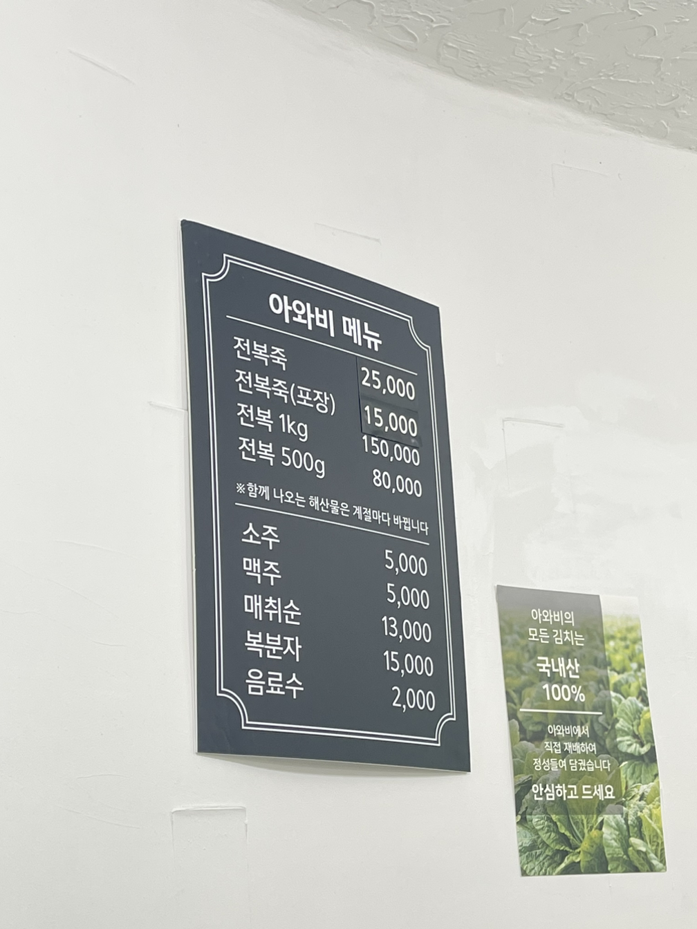 해산물에 취해 있노라면, 전복죽이 나온다. 전복 내장이 잘 풀어져 녹색 빛을 띠는 전북 죽은 부드럽고 고소하고 맛있다. 반찬도 두말할 나위 없다. 워낙 외진 곳에 있으니 로컬 분들도 잘 모르는 곳이라는 이야기를 본 적이 있는 것 같다. 정말 추천하는 식당이요. 꼭 다시 오겠다는 다짐을 하게 만드는 식당이다. 아와비는 일본어로 전복이다. 식사 중 네이버 사전 찾아보고 알았다. 일알못.