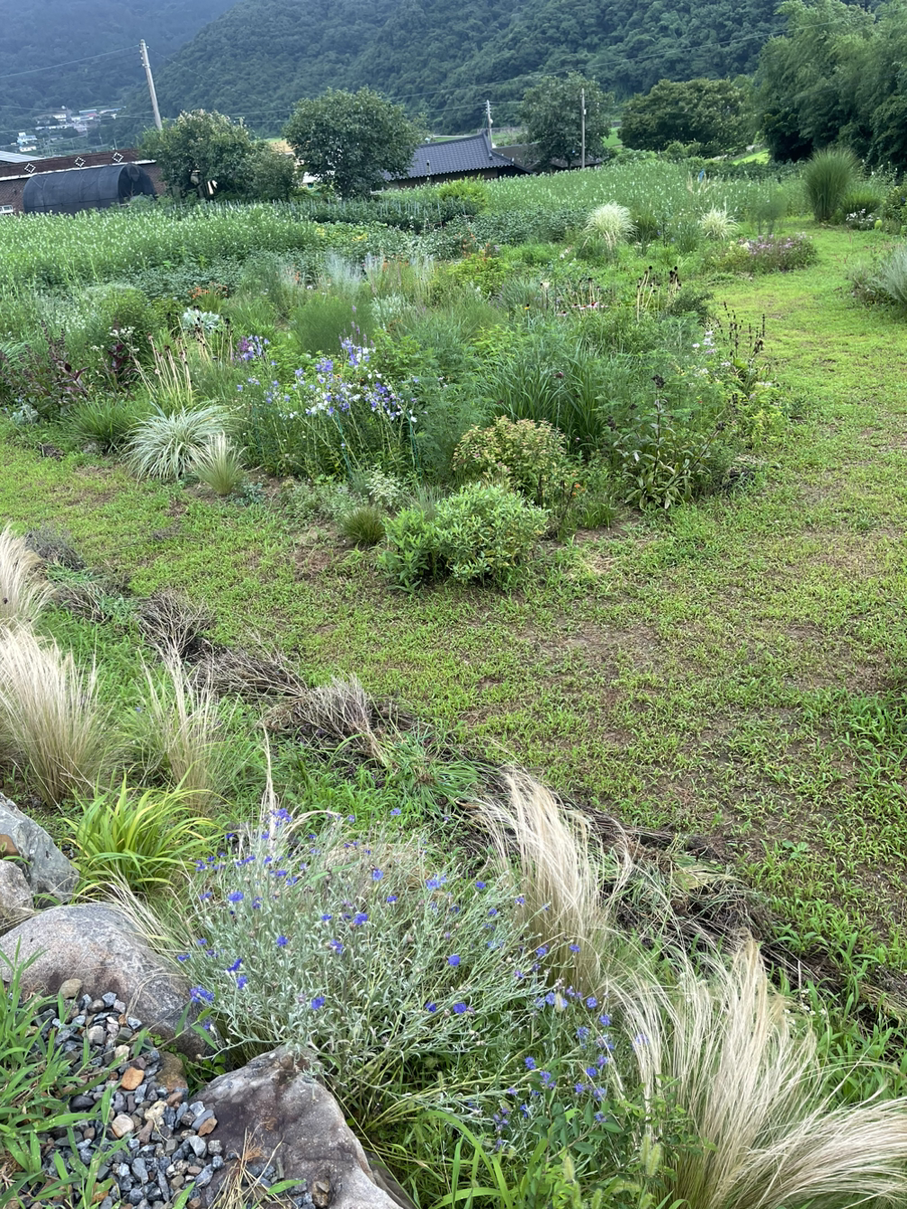 건물도 건물이지만, 주차장 뒤꼍의 화단이 완전히 멋지다. 프로방스 들판을 보는 듯한 자연스러운 아름다움이 있다. 이런 다듬어지지 않은 정원이 너무 좋다. 우리는 다듬은 정원은 취향 아니다.