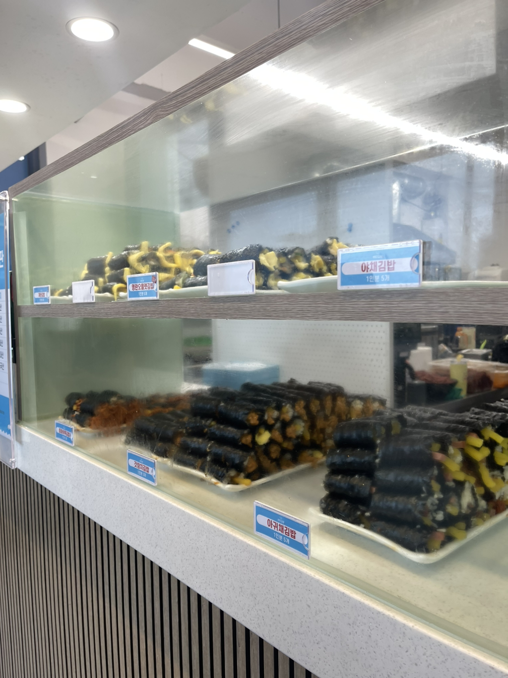 한 시간 반가량 이동해야 하므로, 요기는 하고 가야 한다. 호텔 옆 바다김밥이라는 여수에서 뜬 꼬마 김밥집이 있다. 제주의 만복김밥 비즈니스 모델을 그대로 차용했다. 매장 안에서 먹을 수 없고 사서 들고 나와 밖에서 먹어야 한다. 분위기를 보아하니 다들 차 안이나 가게 앞 벤치에 앉아 군소리 없이 먹는다. 이런 불친절 마케팅도 입소문이 되고 콘셉트가 된다. 제주가 전복이면 여수는 갓김치다. 제일 특이한 메뉴는 갓참치김밥이다. 장범준과 갓김치 없었으면 여수는 큰일 났을 거다. 차에서 몇 개 주섬주섬 먹고 남해로 이동한다.