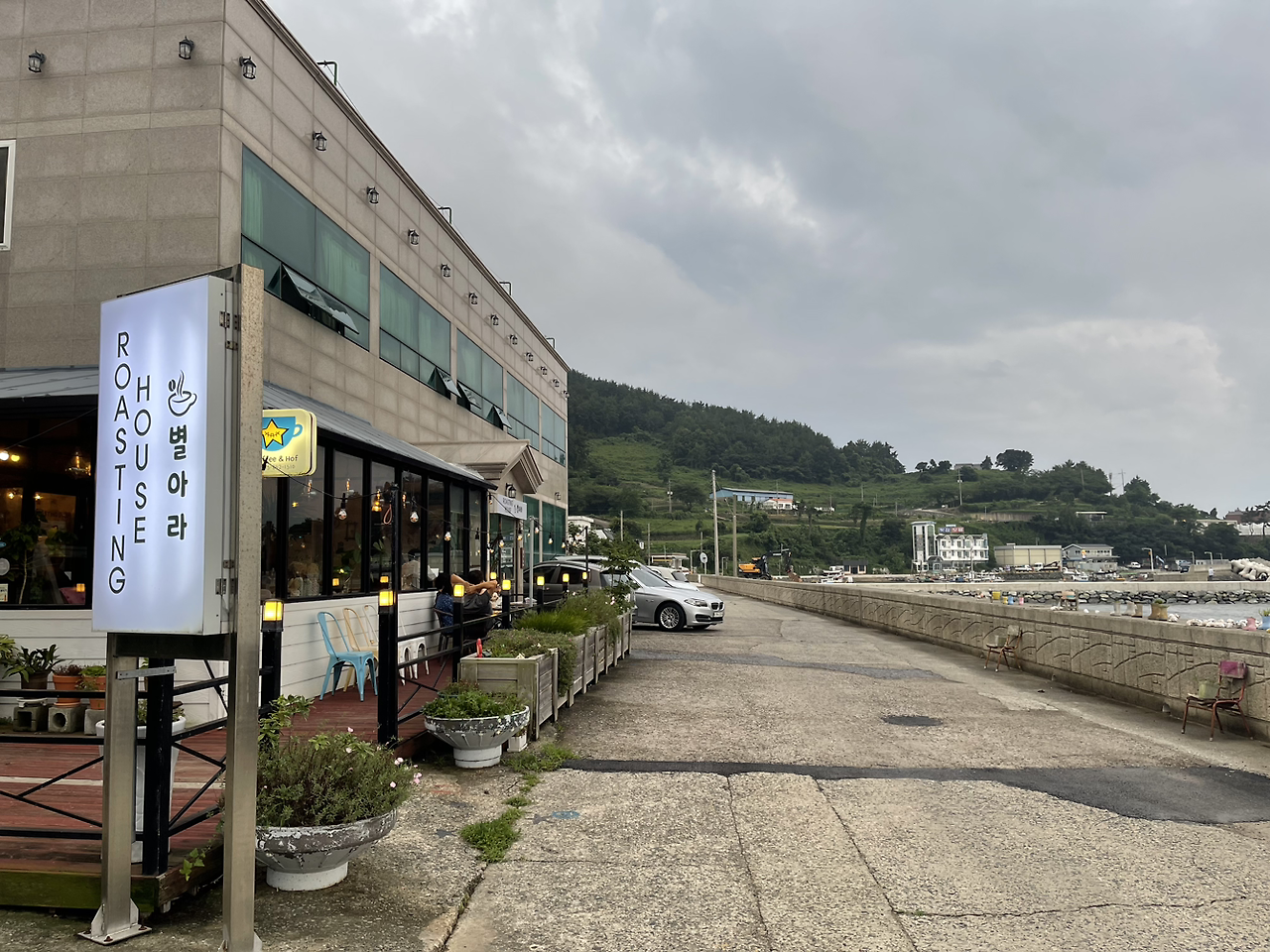 호텔 옆 카페에 도착한다. 우와 손님들이 많다. 지금까지 이동하면서 사람을 하나도 못 봤는데 여기는 붐빈다 싶을 정도로 사람이 있다. 이것도 반전이네. 이 조용한 해변에 로스팅 카페를 표방하고 있다. 이제 우리나라는 어디를 가나 신선하게 볶은 맛있는 커피를 마실 수 있다.