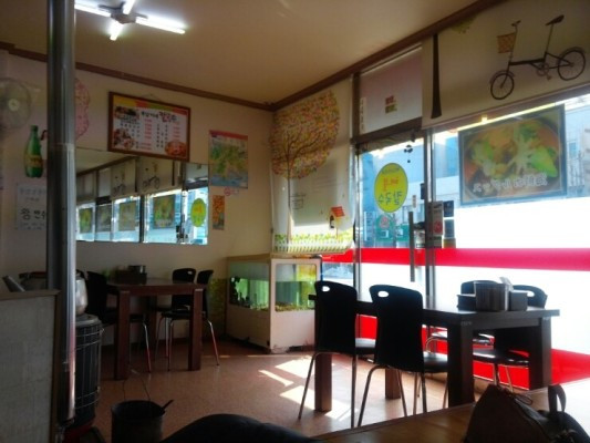 정든식당 포기 후 아바이 마을로 이동하다가 대로변에서 발견한 집이다. 메밀전은 바로해서 주시니 맛있다. 칼국수는 쏘우 쏘우. 냉동 게 비린내가 써억 신선하진 않다. 6천 원의 한계일까. 주인아주머니 혼자 주방에서 요리하시는 터라 식당 같지 않고 집 같은 느낌이다. 장칼국수라는 메뉴는 처음 먹어봤는데, 고추장과 된장 국물이 묘하다. 나름 괜찮다.