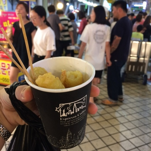 속초의 명물로 붐비는 재래시장이다. 우리나라 근대 도시 형성의 역사와 과정이 비슷하다 보니, 모든 지방도시에는 중앙시장이 있다. 대전에도 역 앞 큰 시장도 중앙시장이다. 서울의 역 앞 중앙시장은 남대문시장으로 불린다. 서울은 특별시니까, 항상 따로 논다. 모든 중앙시장에는 먹거리가 풍부하다. 너무 많아 시각적 포만감에 질리기도 한다. 만석 닭강정에 줄이 많다. 돈을 긁어모은다.