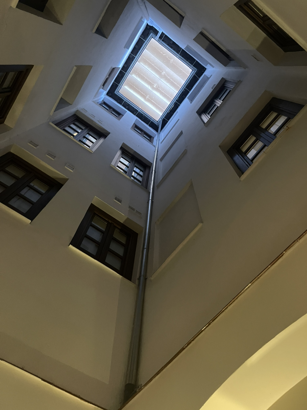 누에바광장 가운데 건물 문틀에 조그마한 적색 간판에 비보 수이츠 호텔 간판이 붙어 있다. 호텔 간판치고 무척 소박하다. 묵직한 나무문을 열고 들어가니 넓진 않지만 고풍스럽고 깔끔한 공간이 나온다. 리셉션 데스크는 한층 위에 있다. 3명이 겨우 들어가는 엘리베이터를 타고 올라가서 체크인을 마치고 방으로 이동한다. 객실은 넓고 깨끗하고 매우 만족스럽다.