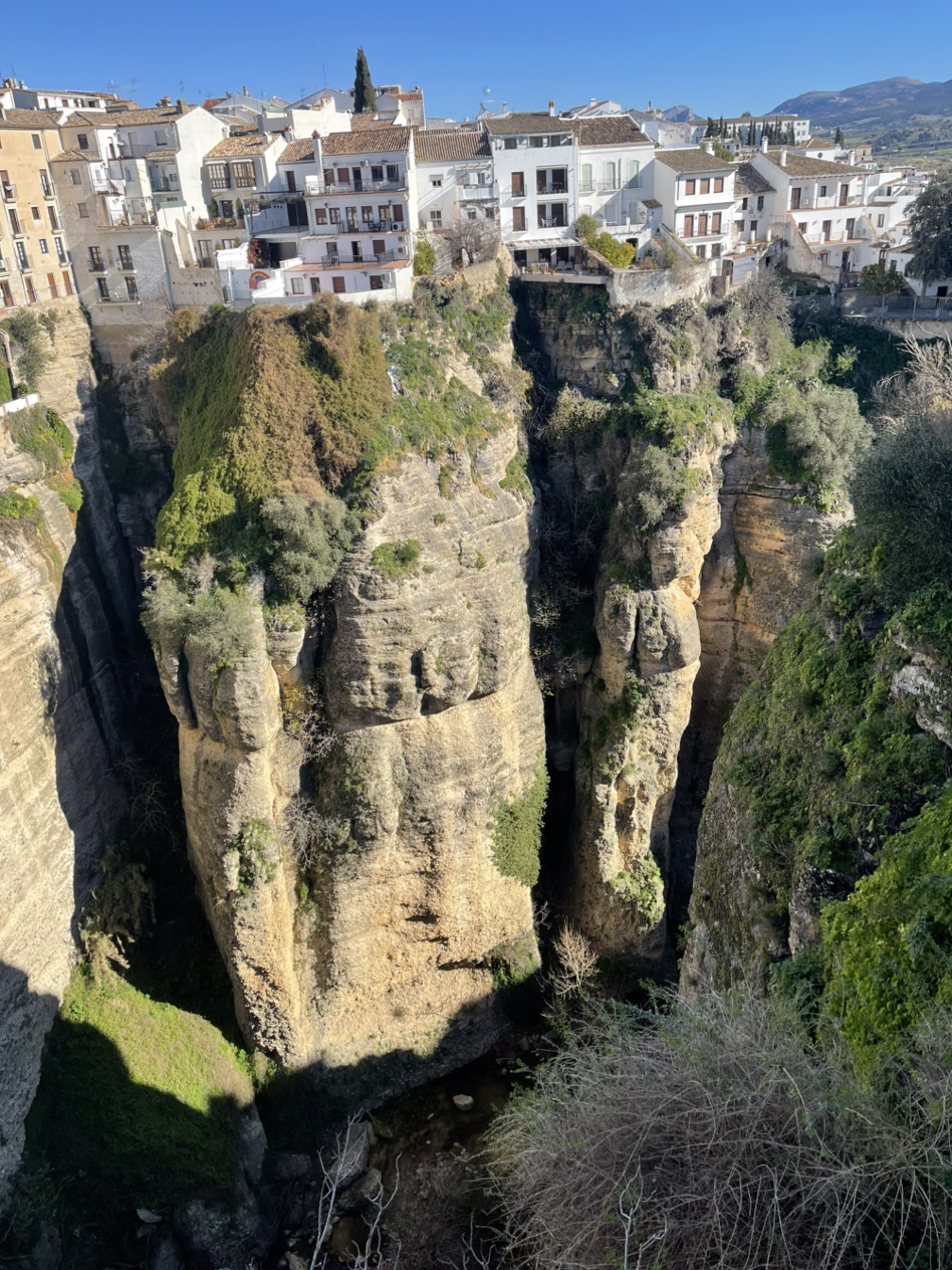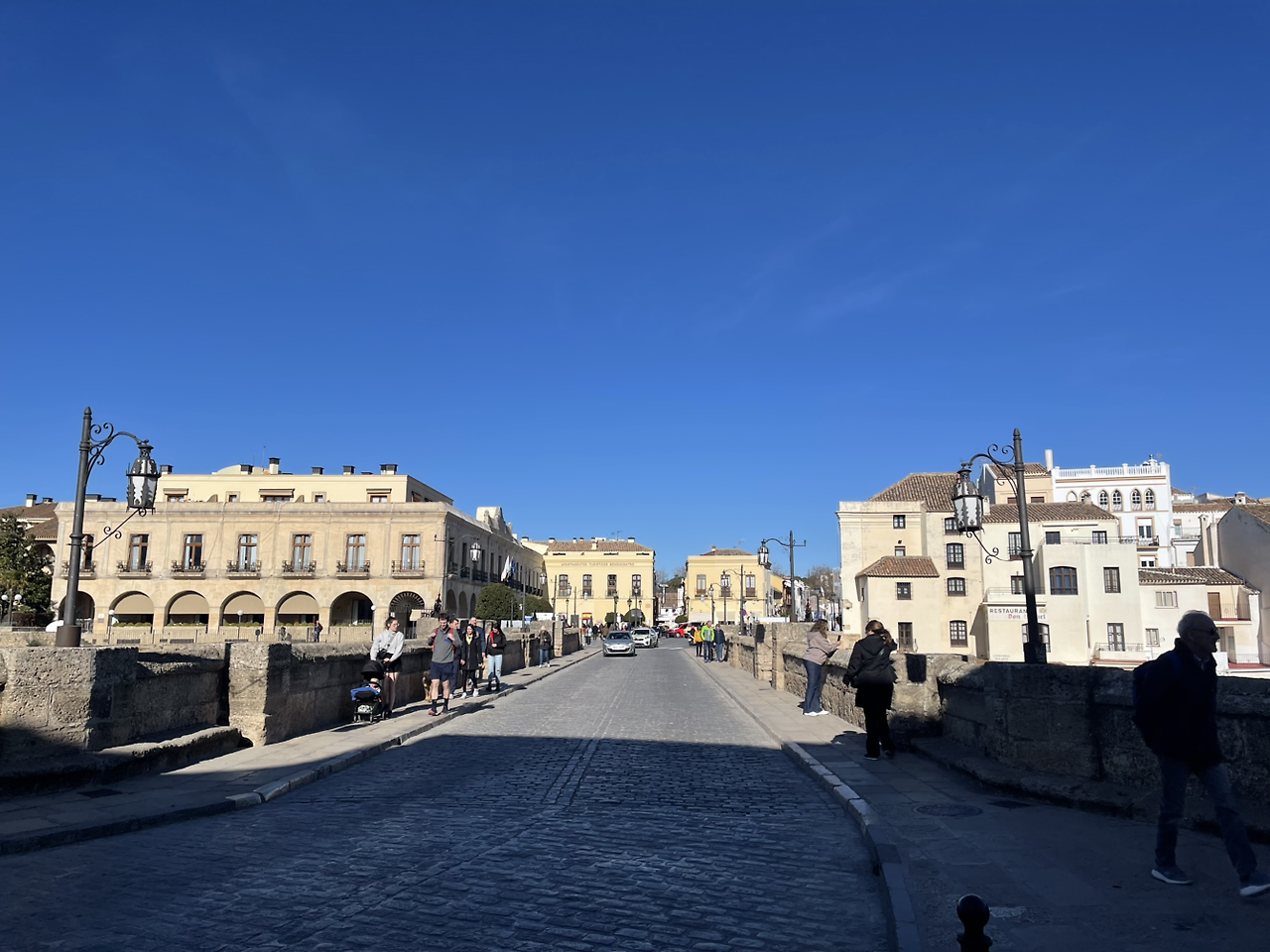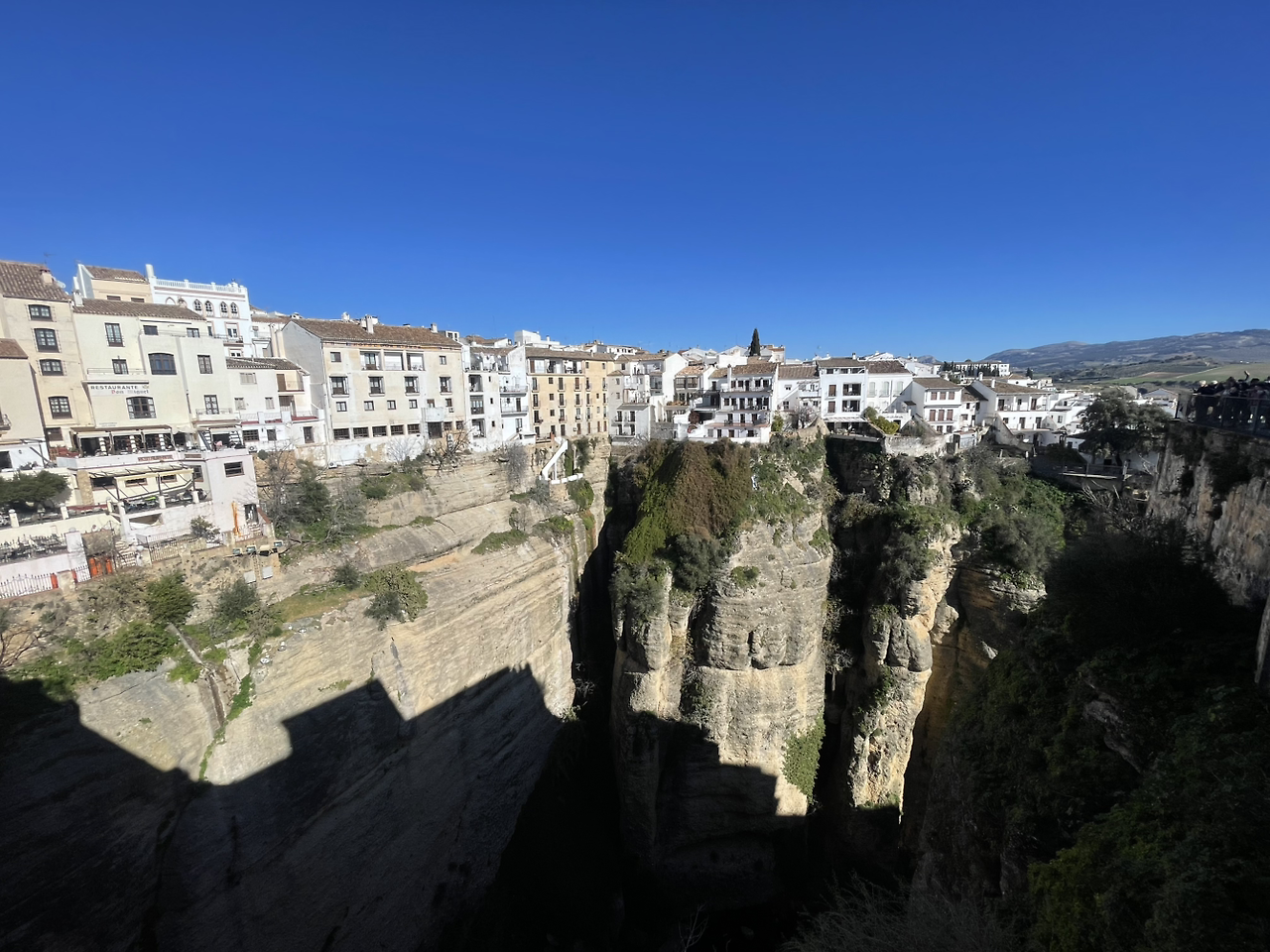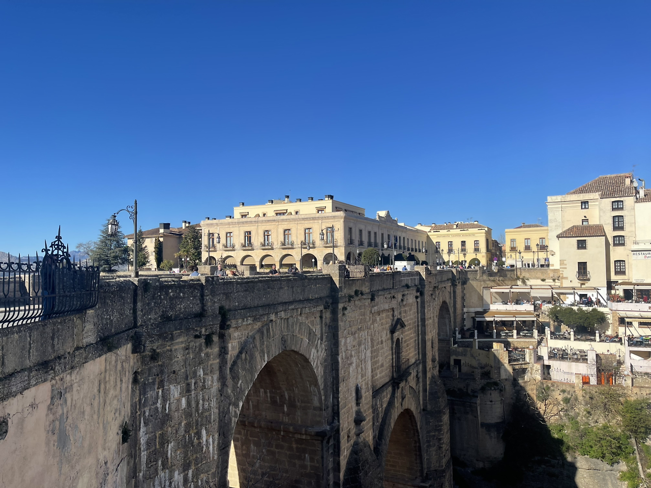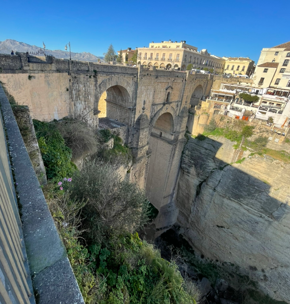 가파르게 깎아지른 절벽 사이를 연결한 누에보 다리는 론다의 최고 절경으로 꼽힌다. 실제로 보는 아찔함은 사진으로 대치하기 힘들다. 다리 하나로 이 도시는 관광 명소가 되었다. 그래서인지 말라가에서는 거의 못 본 한국분들을 포함한 아시안 사람들을 많이 볼 수 있다.