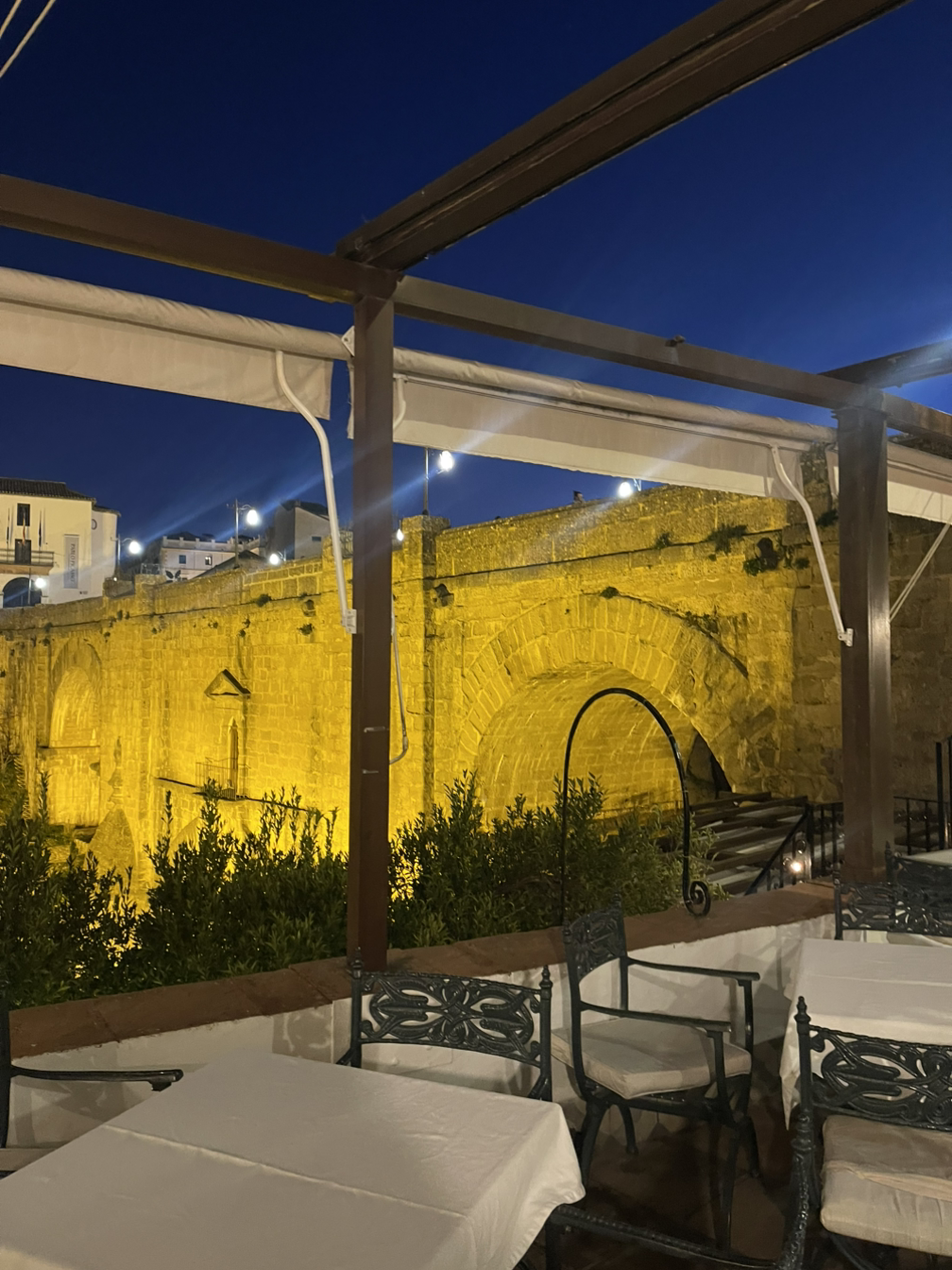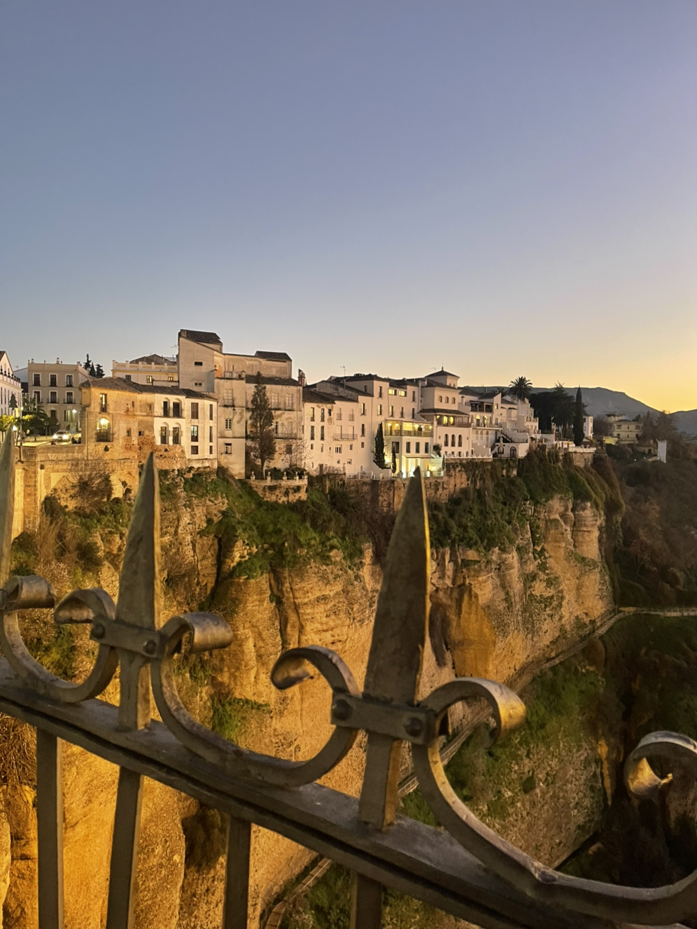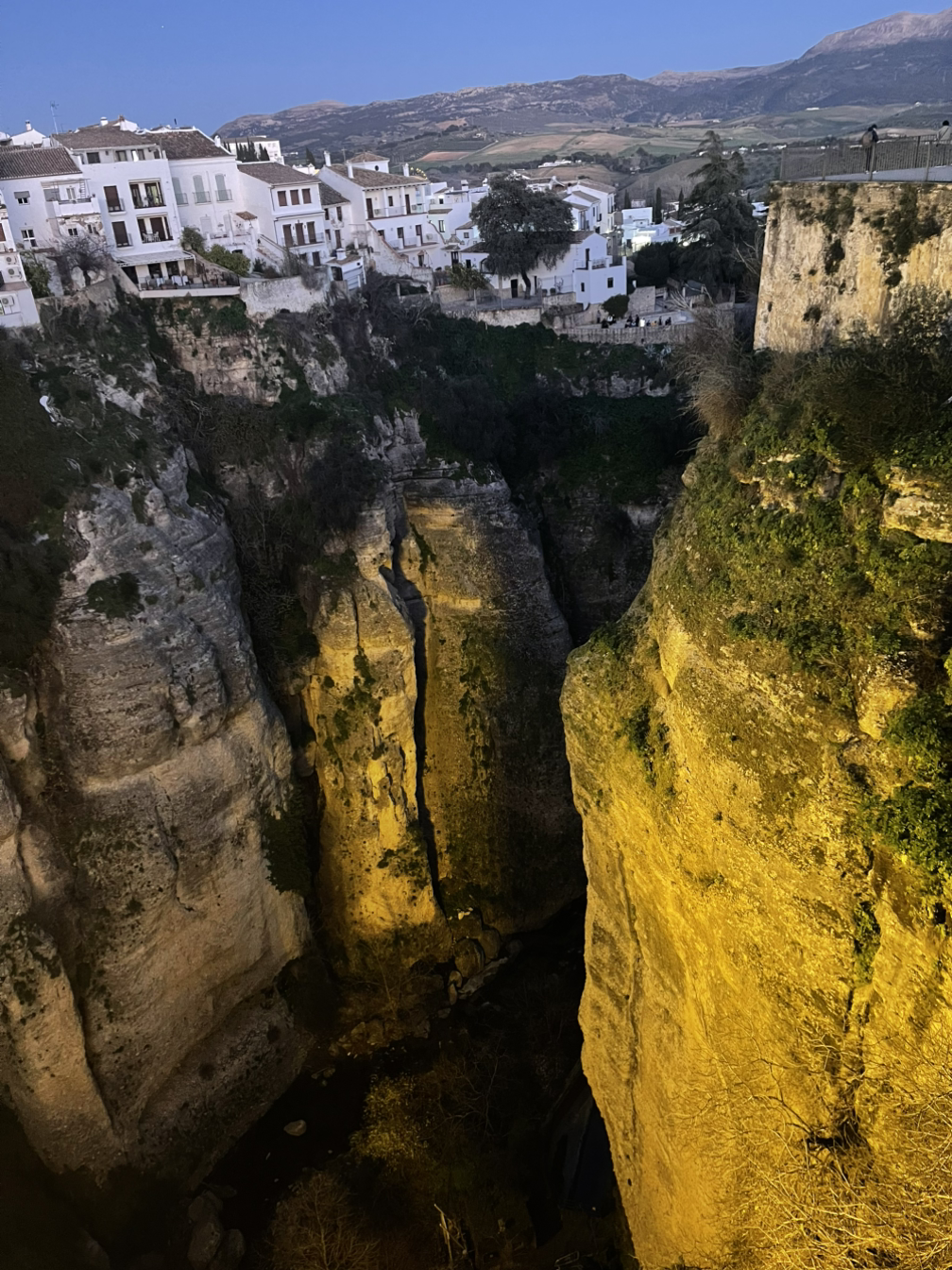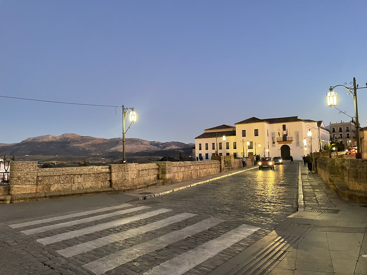 짐을 풀고 저녁식사 겸 산책을 하러 나간다. B는 건강 상태가 좋지 않아 저녁식사는 금식이다. 노을 지는 산골 마을 론다는 고즈넉하고 웅장하다. 조명으로 치장한 소도시의 야경은 환상적이다. 숙소에서 몇 걸음 걸어 나가면 깎아지른 절벽에 세운 누에보 다리가 있다. 절벽 곳곳에 설치한 조명 덕분에 신비로운 풍경은 그 감흥을 극대화한다.