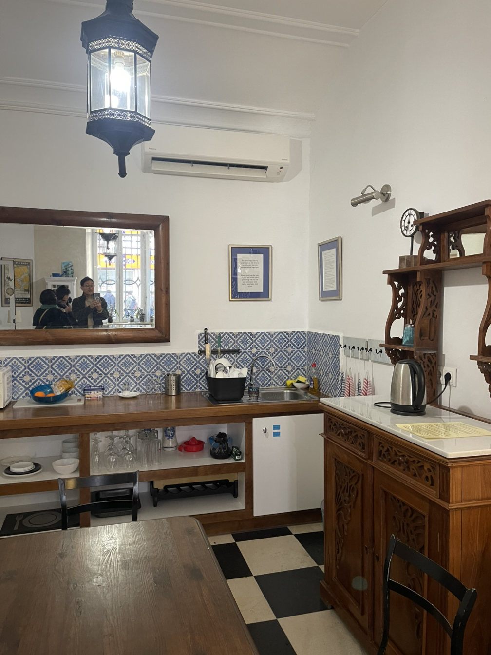 이 호텔은 게스트 하우스처럼 키친 시설이 있다. 아침 뷔페를 판매하는 카페도 있고 셀프 쿠킹 공간도 있다. 고객에 대한 배려가 감동적이다. 키친 공간도 어느 집에 온 듯 무척 따듯한 이미지를 가지고 있다. 화려하지는 않지만 낡은 가구들이 모여 자아내는 분위기에 기분이 좋아진다. 환자 둘은 남은 누룽지를 먹어 속을 달랜다.