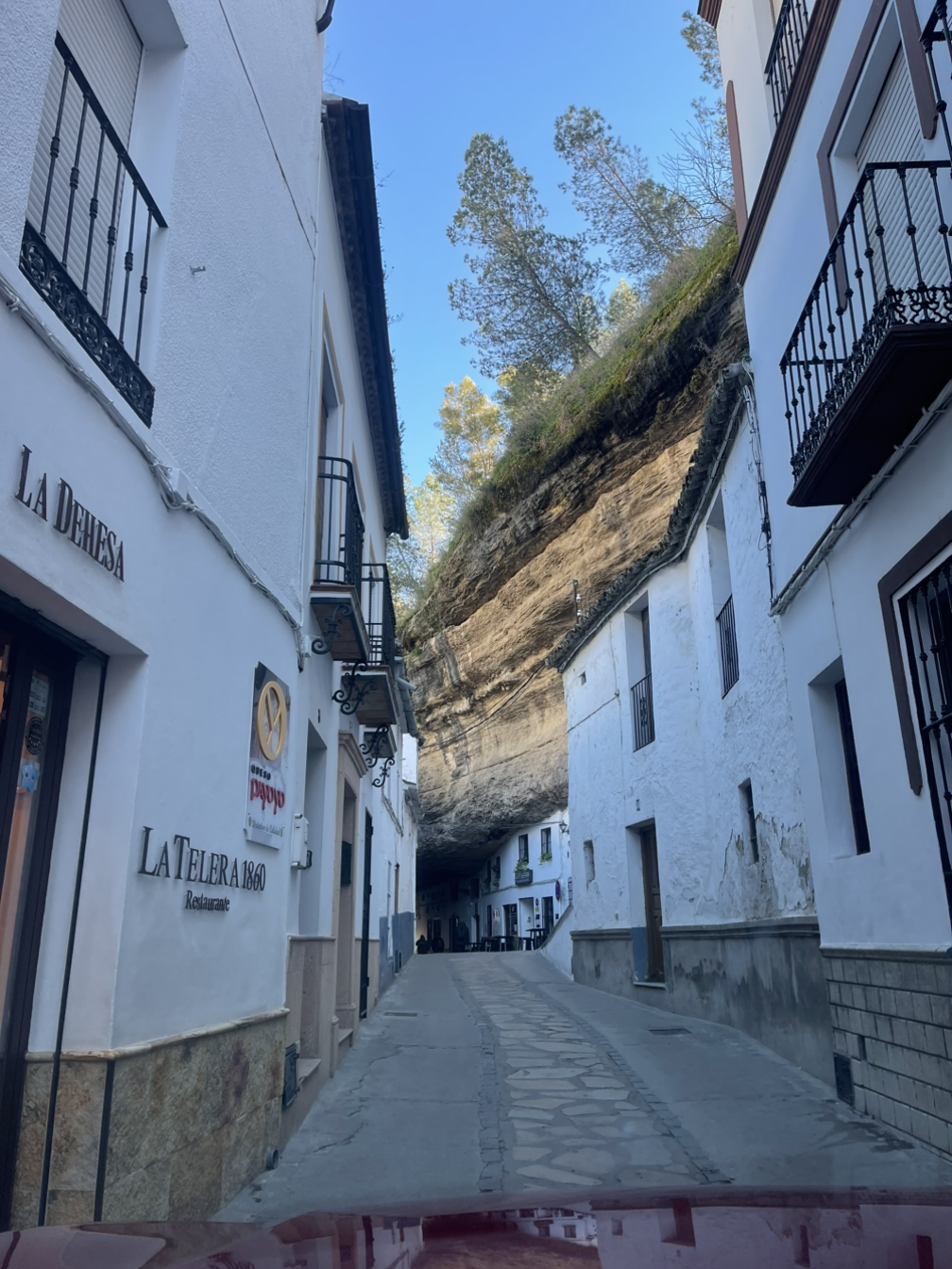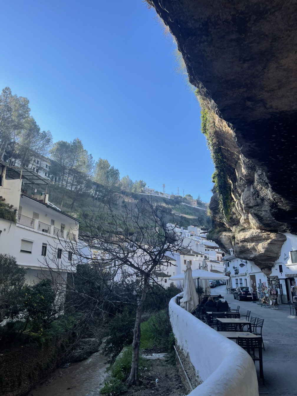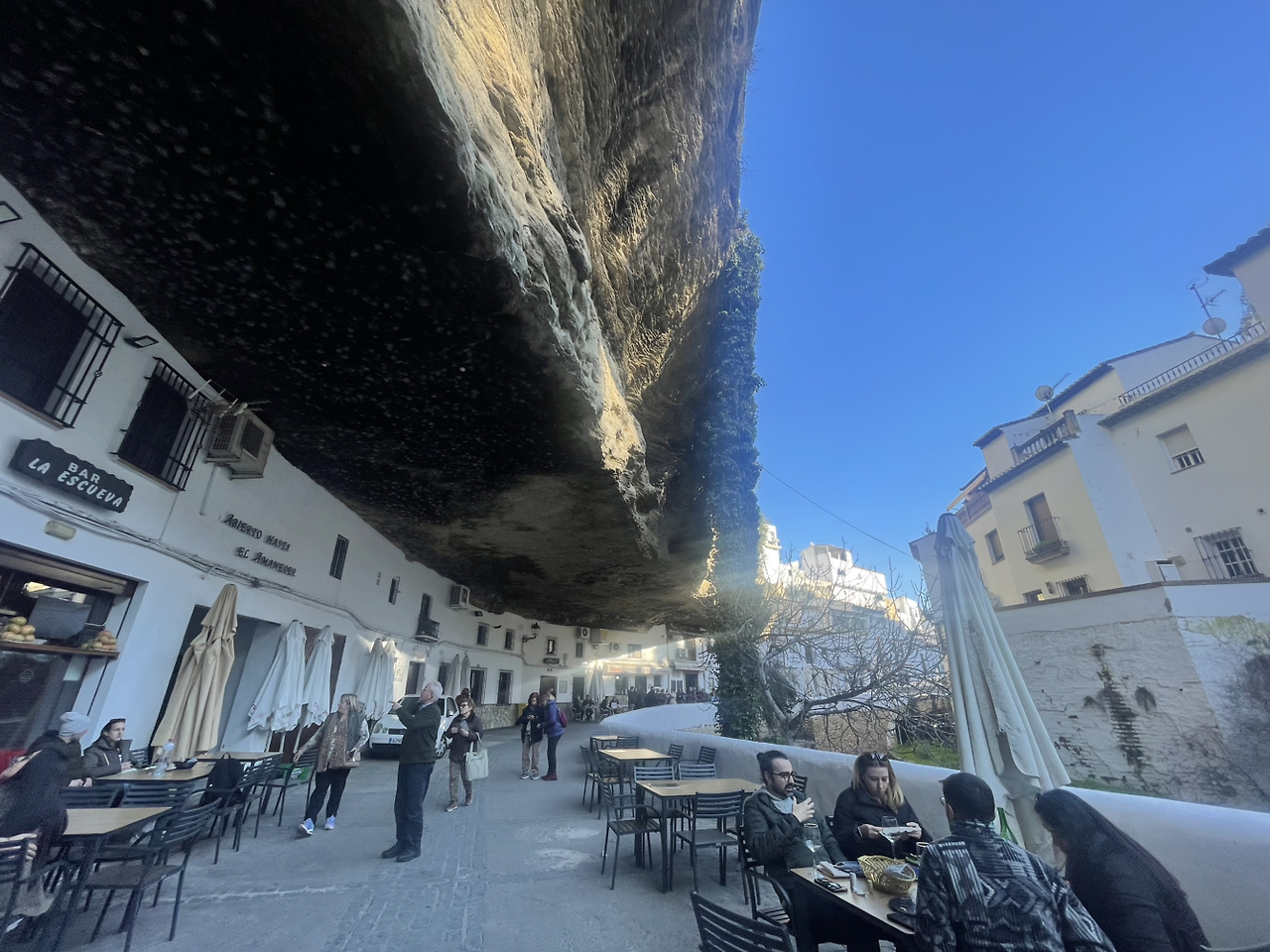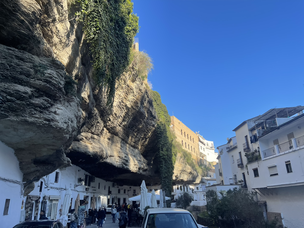 말라가에서 세비야로 올라가는 중에 유명한 관광 스폿 도시가 있다. 세테닐이라는 산악 소도시인데 절벽을 파고 깎아 지은 마을과 카페촌이 유명하당 주로 세비야에서 근교 여행지로 각광받는다. 말라가를 출발해서 약 40분 정도 후 도착한다.
