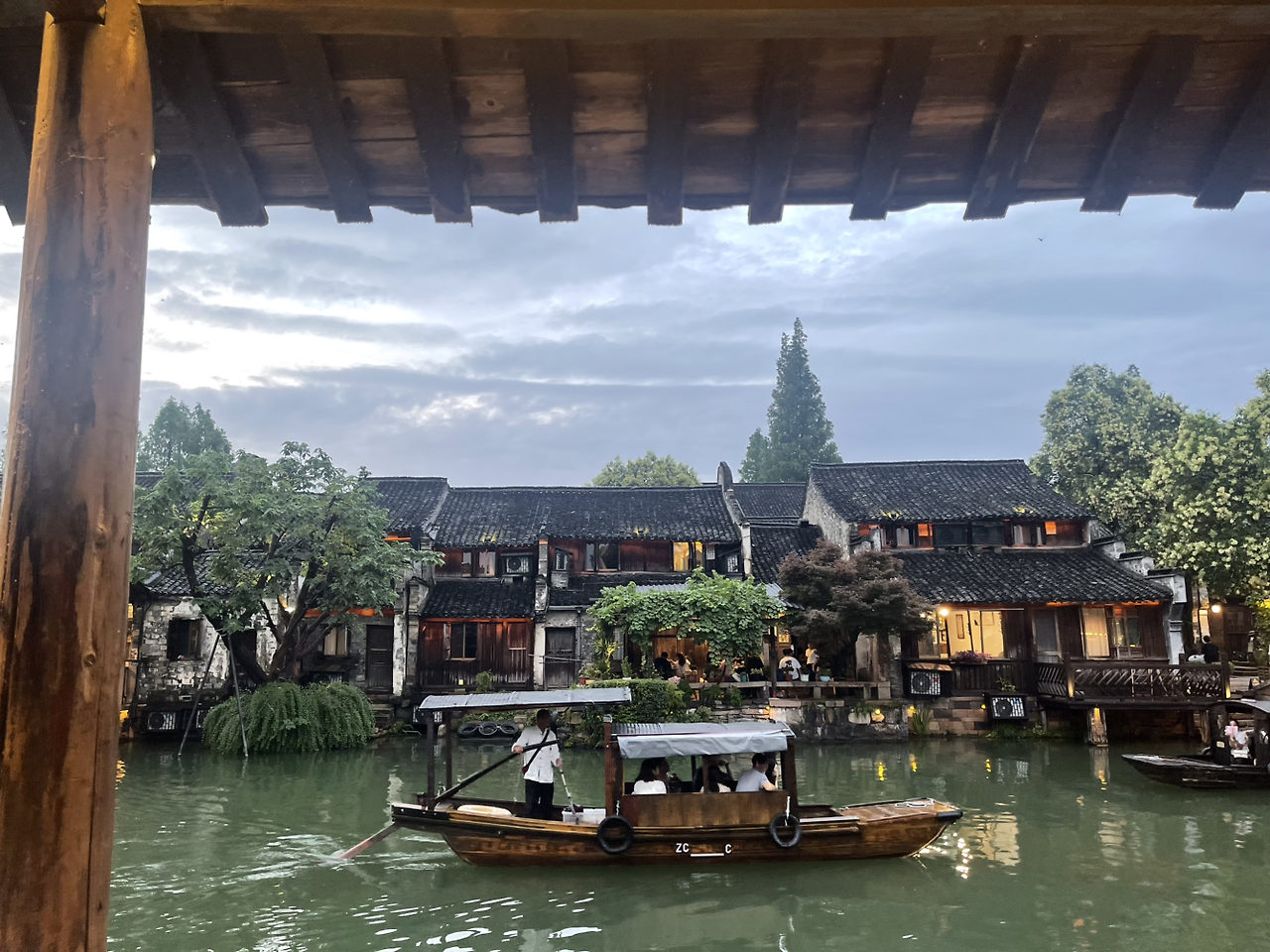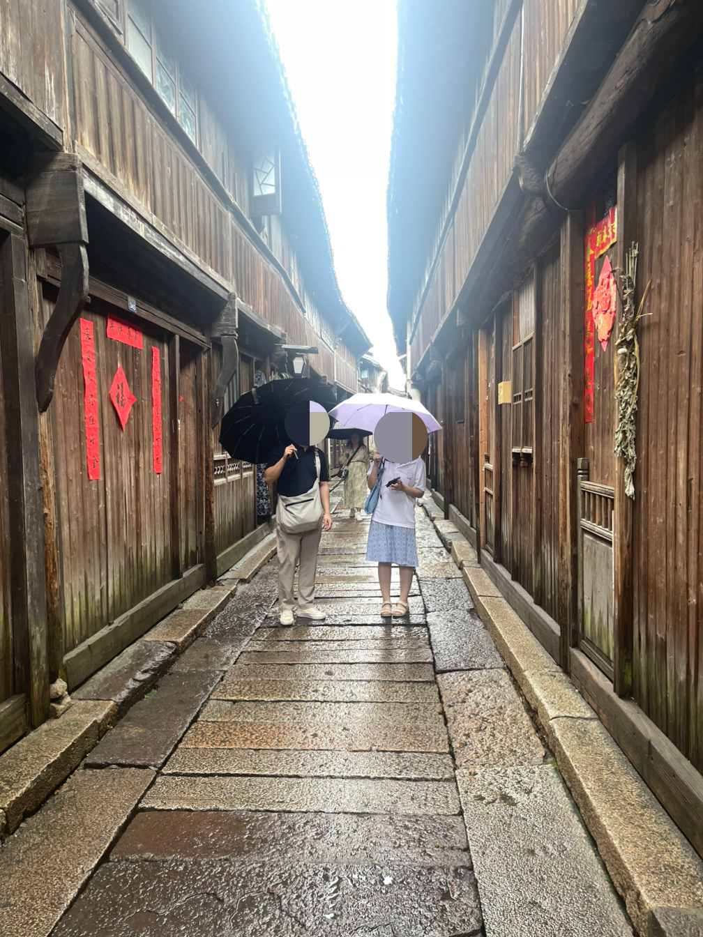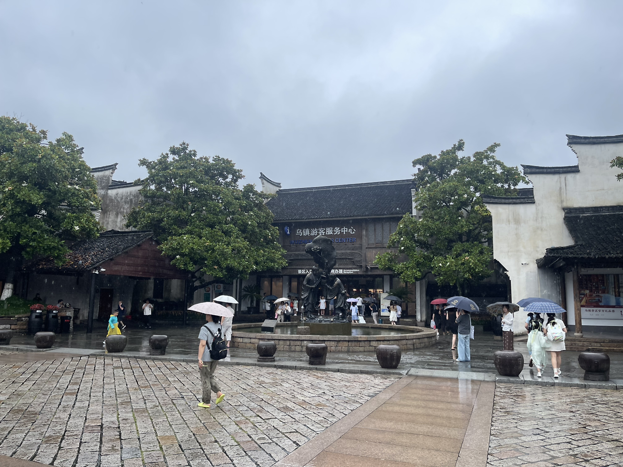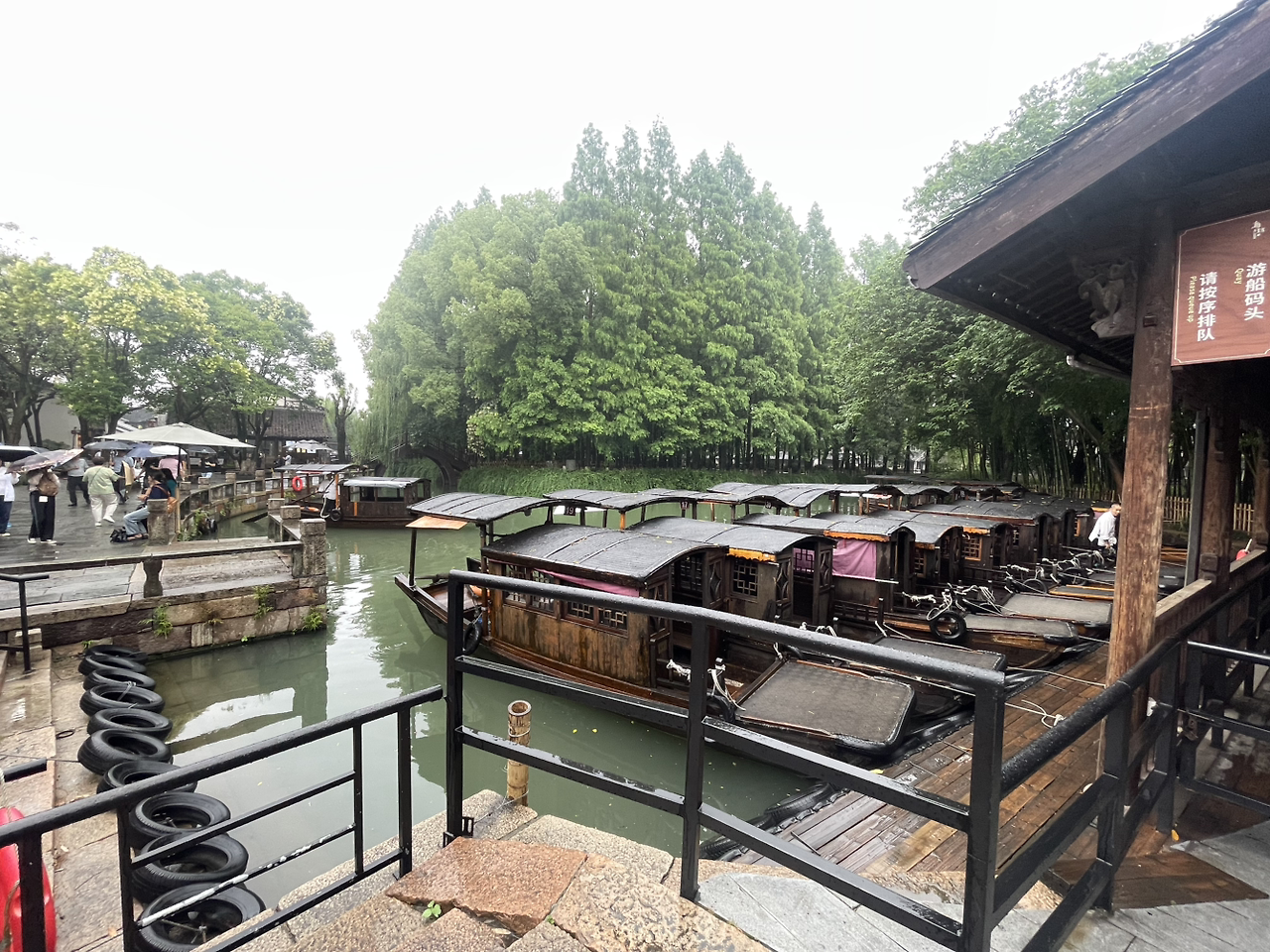 어제부터 내린 비는 계속 추적 거린다. 하늘은 온동 잿빛이고 습도는 높다. 수향마을 우전(Wuzhen)은 1,300년 이상의 역사를 지닌 중국의 전통적인 수상 마을로, 동양의 베니스라고도 불린다. 우전은 크게 동책(동쪽 마을)과 서책(서쪽 마을)으로 나뉘는데, 동책은 비교적 조용하고 동네 주민들이 거주하는 '찐 로컬'이며, 서책은 규모가 크고 관광지로 개발되어 상점, 공방, 전시관 등이 많다. 특히 서책의 야경이 아름답기로 유명하다고 하며, 우리의 숙소 호텔은 서책에 있다. 비가 오니 축축한 실내에 손님들이 바글거린다. 의외로 대부분 손님들은 중국 내국인들이다. 긴 줄을 서서 기다리다 체크인을 하고 가방을 맡겨 놓은 후 동책으로 구경을 떠난다.