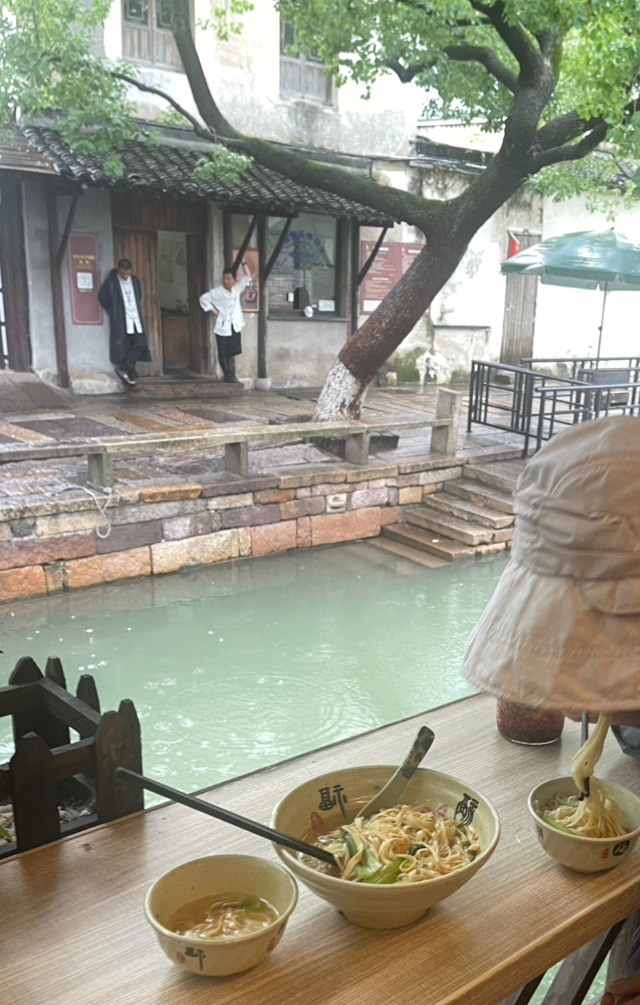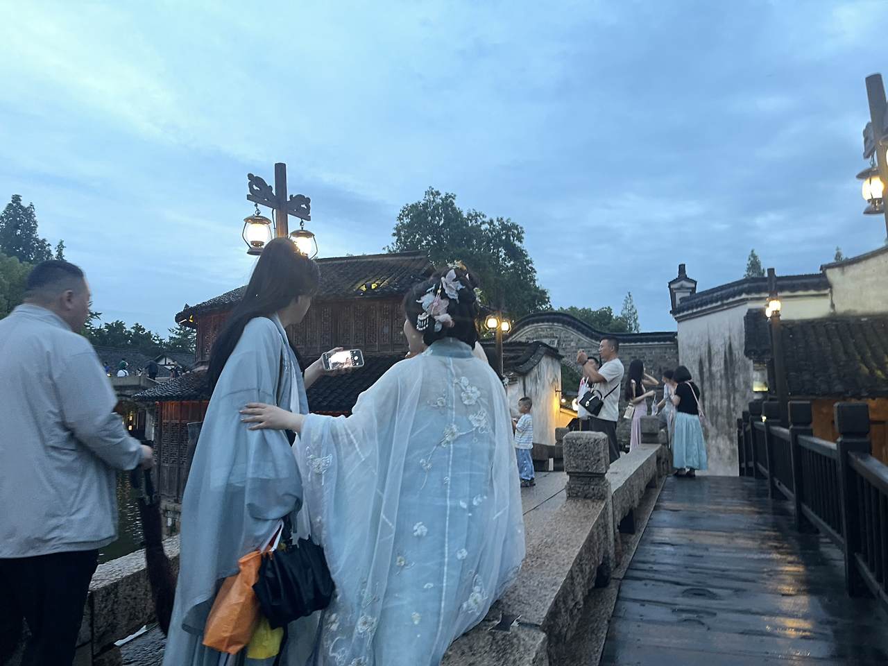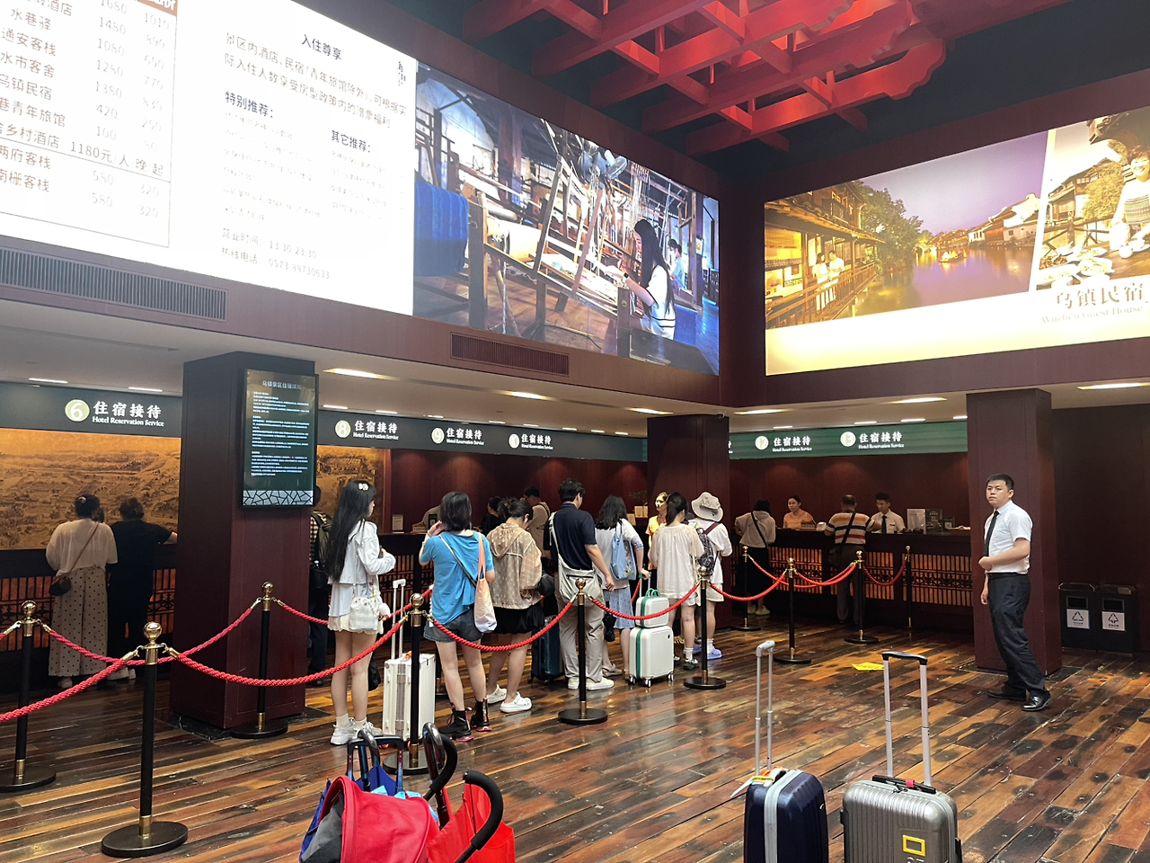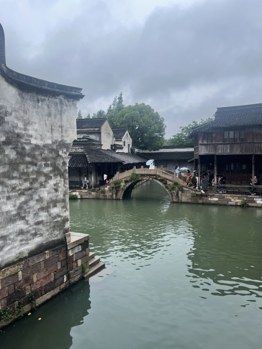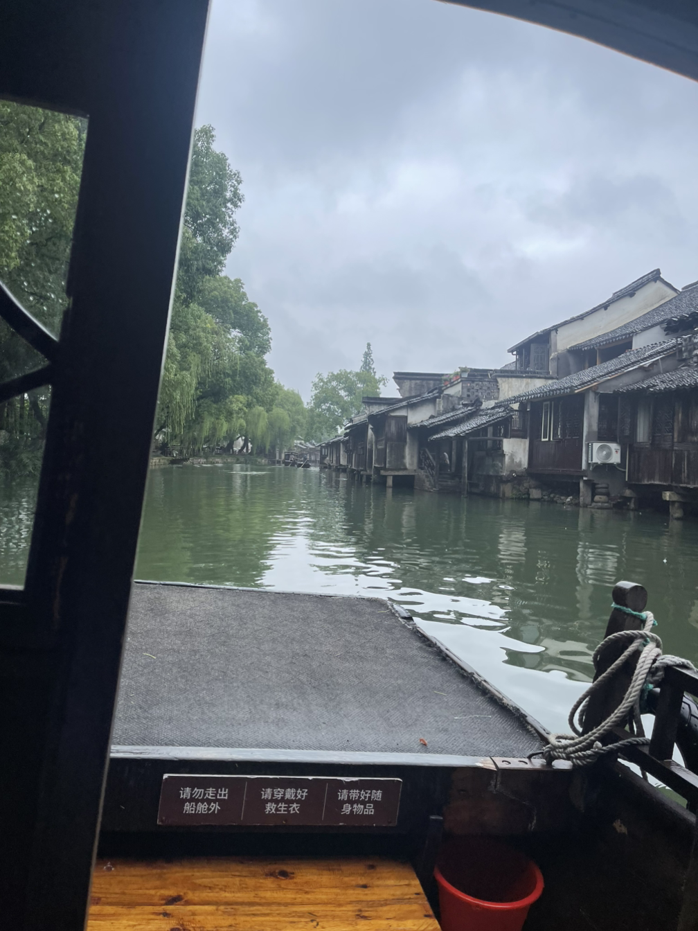 어제부터 내린 비는 계속 추적 거린다. 하늘은 온동 잿빛이고 습도는 높다. 수향마을 우전(Wuzhen)은 1,300년 이상의 역사를 지닌 중국의 전통적인 수상 마을로, 동양의 베니스라고도 불린다. 우전은 크게 동책(동쪽 마을)과 서책(서쪽 마을)으로 나뉘는데, 동책은 비교적 조용하고 동네 주민들이 거주하는 '찐 로컬'이며, 서책은 규모가 크고 관광지로 개발되어 상점, 공방, 전시관 등이 많다. 특히 서책의 야경이 아름답기로 유명하다고 하며, 우리의 숙소 호텔은 서책에 있다. 비가 오니 축축한 실내에 손님들이 바글거린다. 의외로 대부분 손님들은 중국 내국인들이다. 긴 줄을 서서 기다리다 체크인을 하고 가방을 맡겨 놓은 후 동책으로 구경을 떠난다.