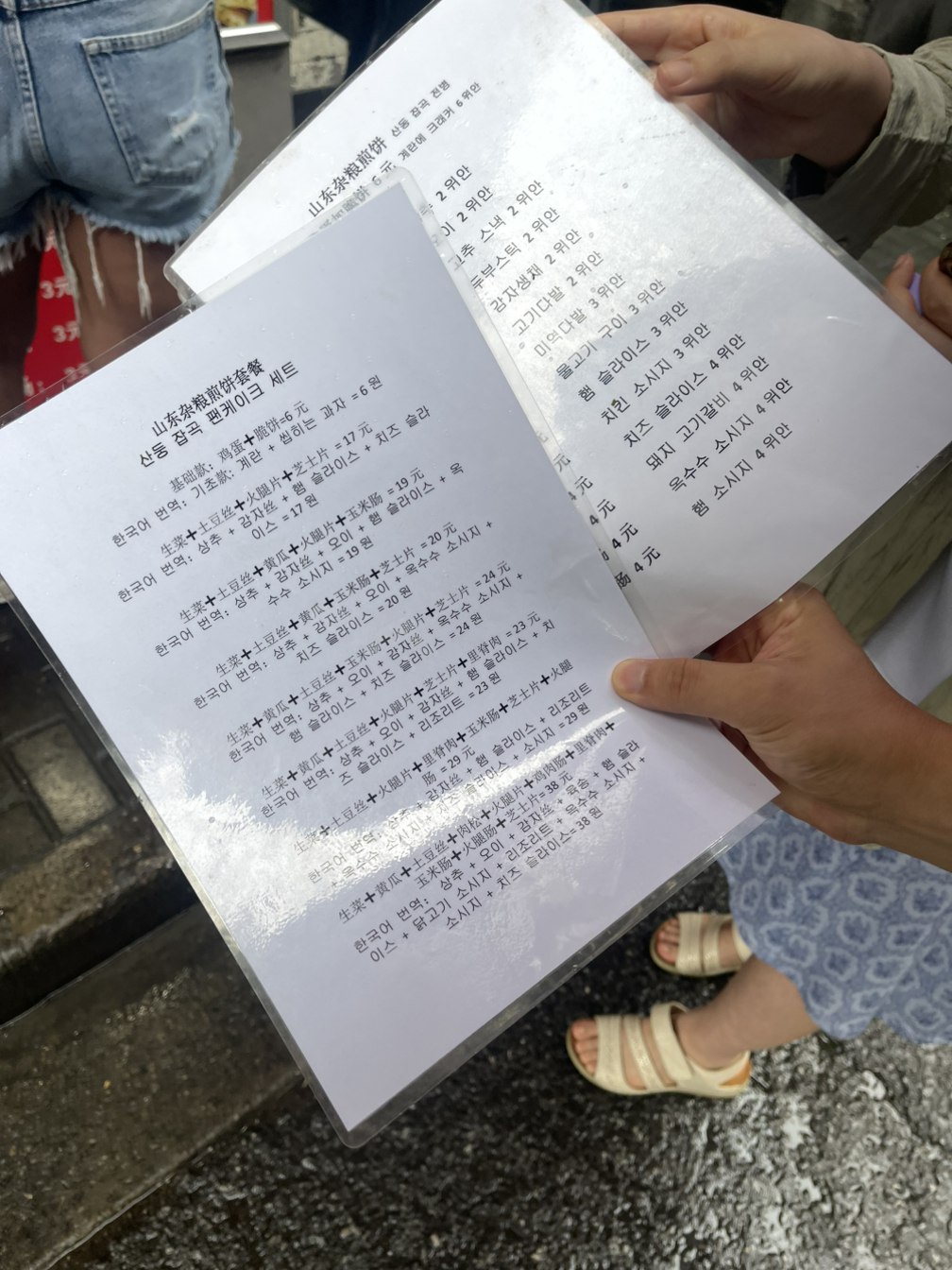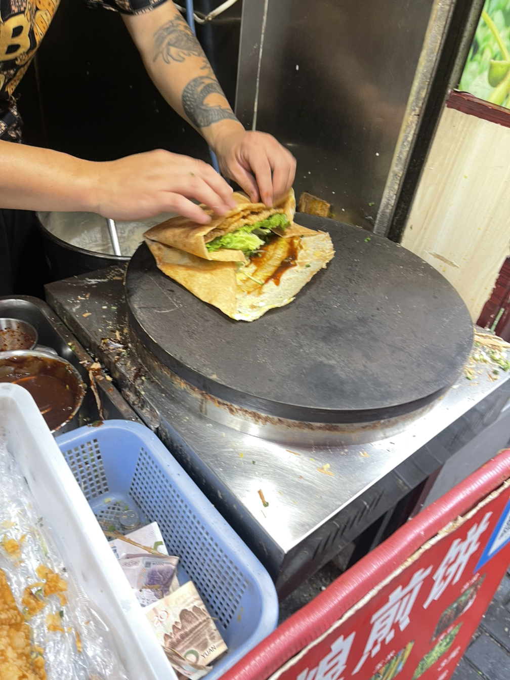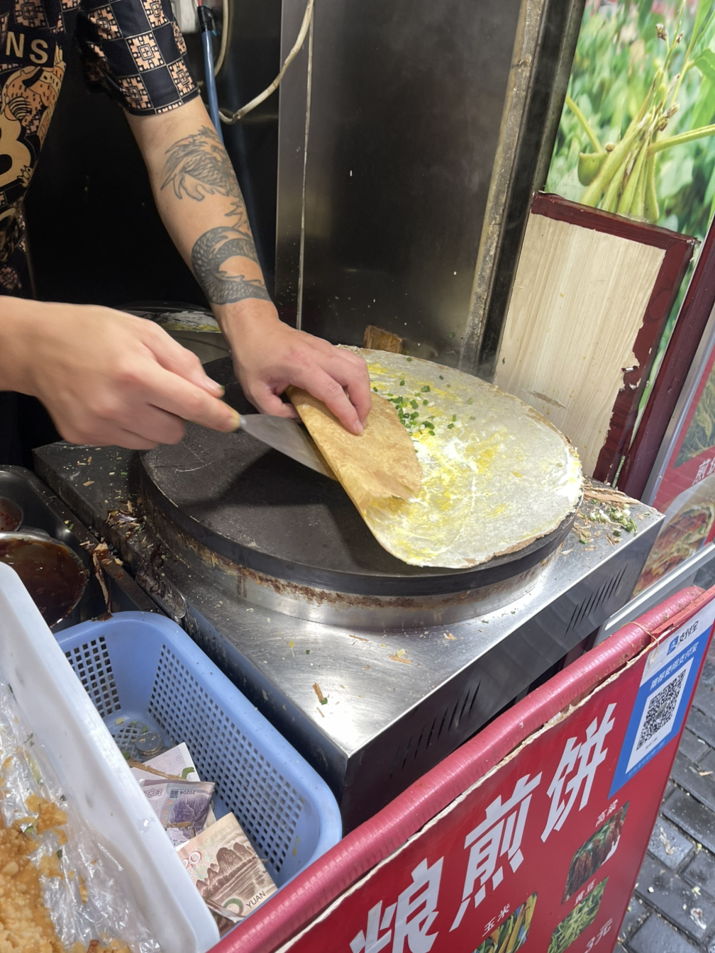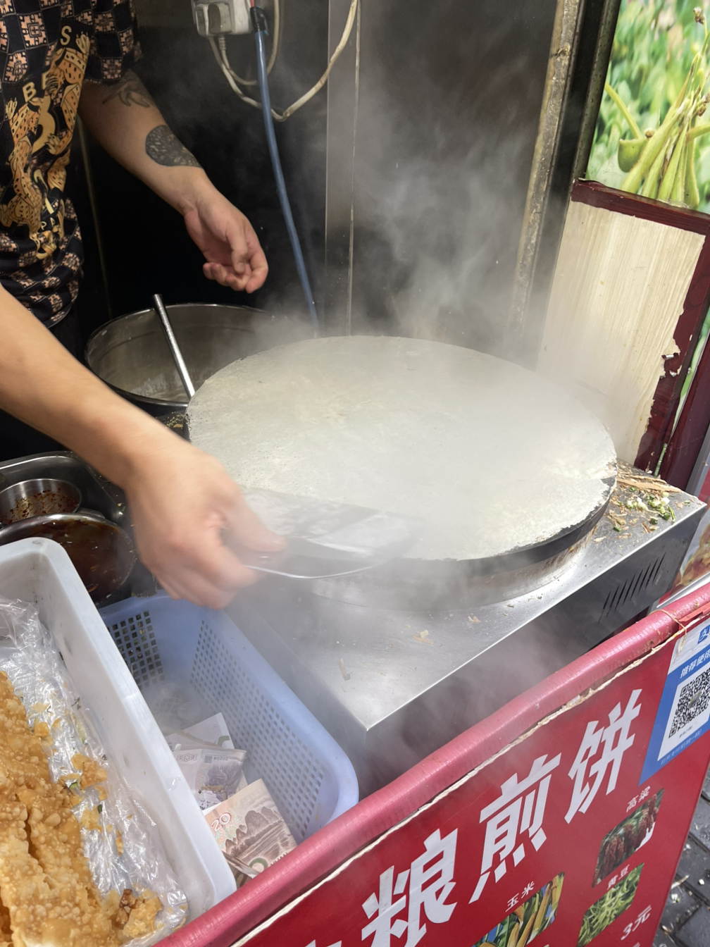 조식은 자체 문화체험 프로그램으로 상하이 거리음식 젠빙(전병)을 먹어 본다.이다. 중국의 일반적인 아침 메뉴 중 하나이니 숙소에서 멀지 않은 곳에도 있다. 용 문신을 멋지게 하신 주인장의 재빠른 손놀림에 젠빙이 금방금방 만들어진다. 얇게 펴서 구운 전병 위에 오이와 야채 등 각종 토핑을 넣고 싸 먹는데, 맛없기도 힘든 레시피다. 맛의 관건은 아주 얇게 펴서 구운 전병이다. 전병이 얇아 탄수화물의 텁텁함을 덜어주고 신선한 고명 맛이 메인이 되니 사각하고 상큼하다. 부피는 크지만 거북하지 않고 맛있다.