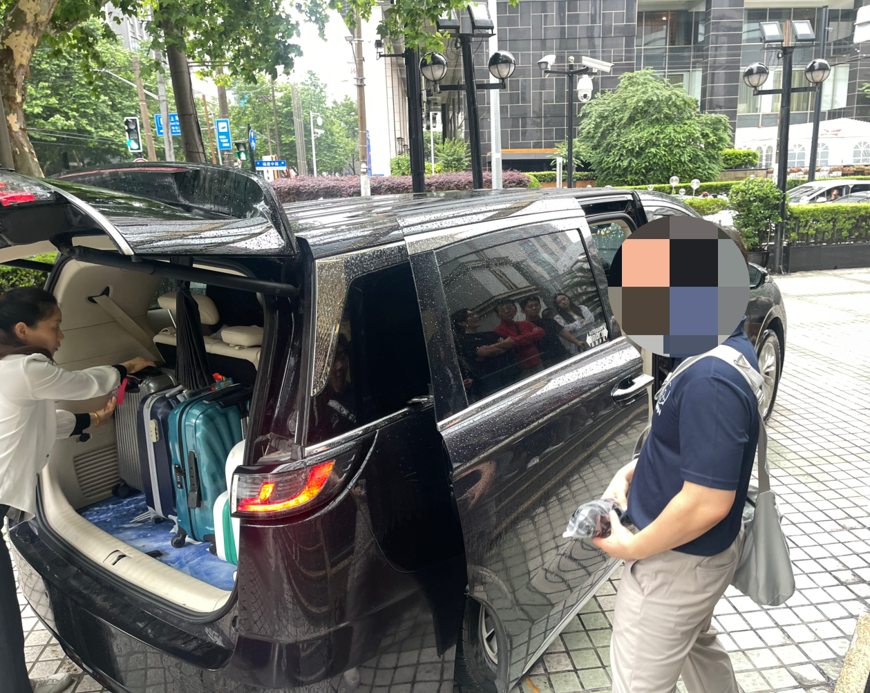 호텔 체크 아웃 후 B가 그리고 제작해서 선물해 준 패밀리 캐릭터 티셔츠를 입고 로비에서 기념사진을 한컷 찍는다. B의 관찰력과 손재주는 탁월하다. 시간이 되니 승합차가 도착한다. 이 차로 약 1시간 50분 정도 다음 도시 우전으로 이동한다.