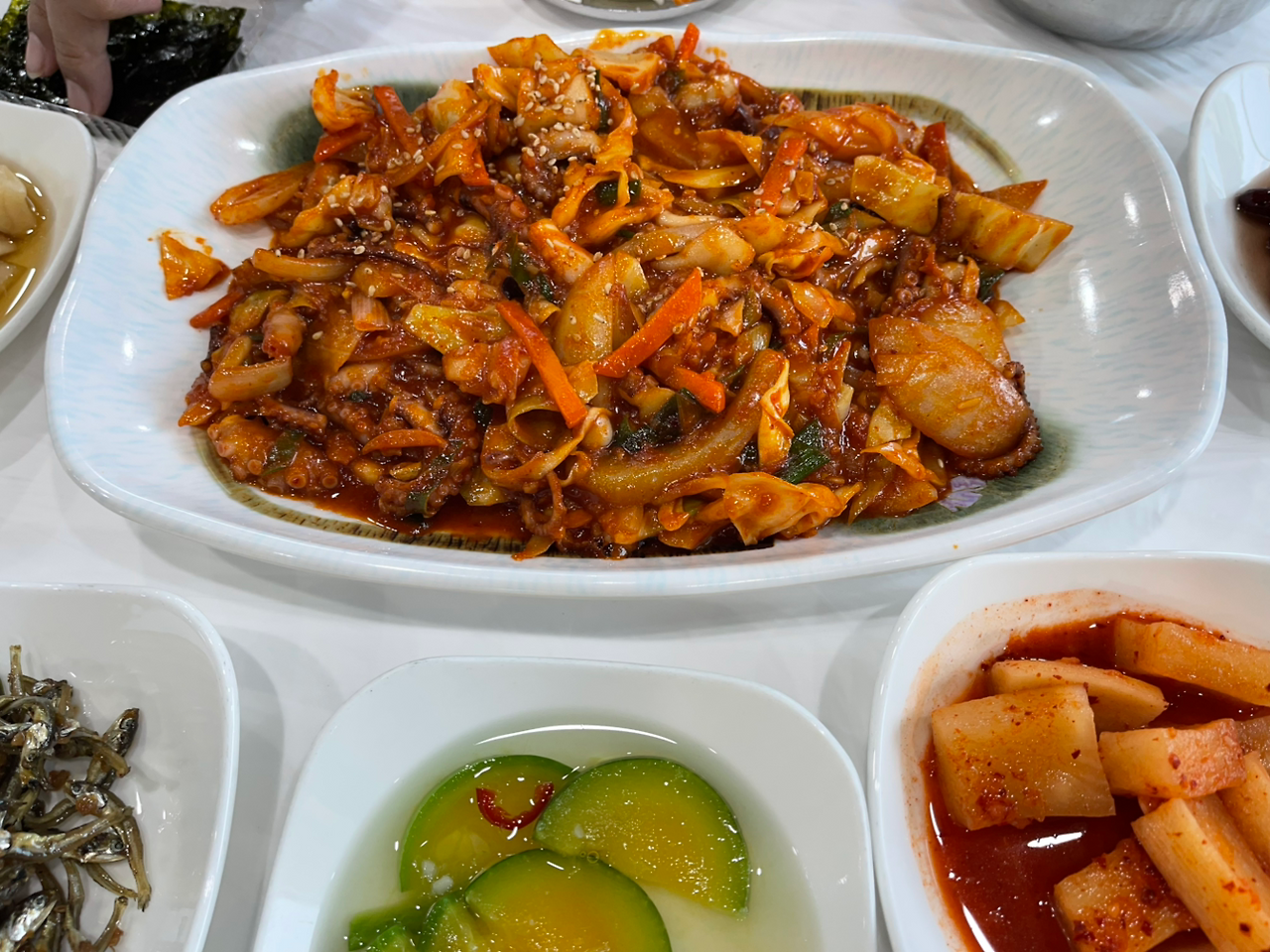 숙소에서 가까운 식당 중 하나. 남면으로 진입하는 입구에 있다. 남면에 있는 식당들은 대체로 일찍 영업을 종료한다. 이곳은 저녁식사를 부담 없이 할 수 있게 넉넉하게 영업을 한다. 낙지볶음을 주문했는데, 기대했던 것보다 훨씬 맛있다. 낙지 양도 푸짐하고 약간 맵지만 충분히 허용가능한 수준이다. 뜻 밖에 남면에 식사처 하나 찜하게 된다.