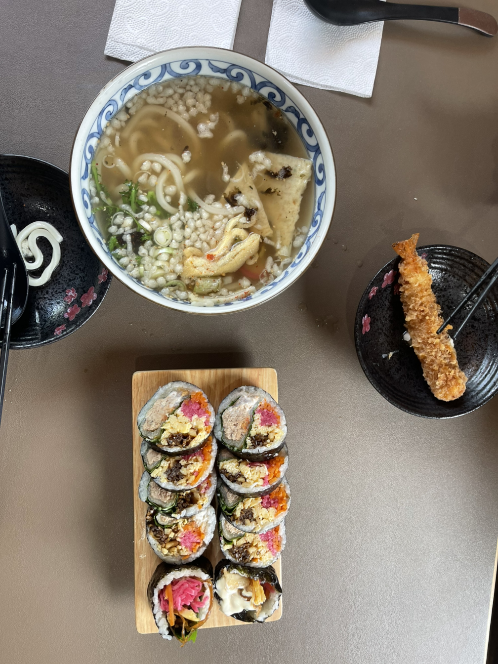 남면에 있는 감각파 김밥집. 4시 20분에 라스트 오더라 저력식사는 불가능하다. 점심시간에 맞춰 간단히 점심식사가 적당하니 낮 시간에 방문한다. 새우튀김 가락국수와 묵은지 참치 김밥을 주문했는데 괜찮은 맛과 분위기를 제공한다. 그래서인지 손님들이 많이 들어오신다. 간단히 요기하기에 좋은 곳이다.