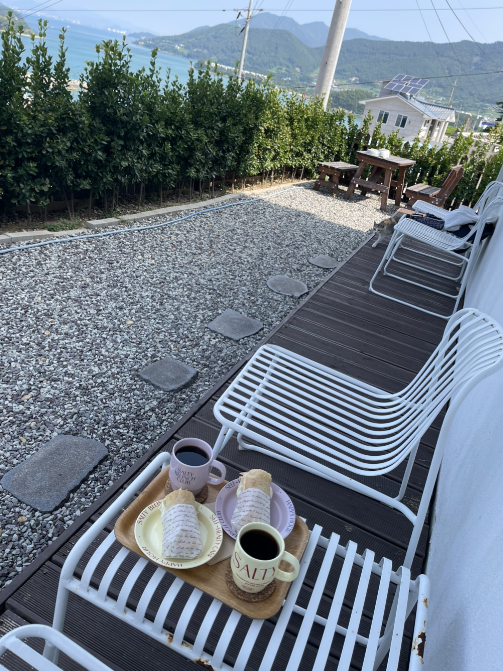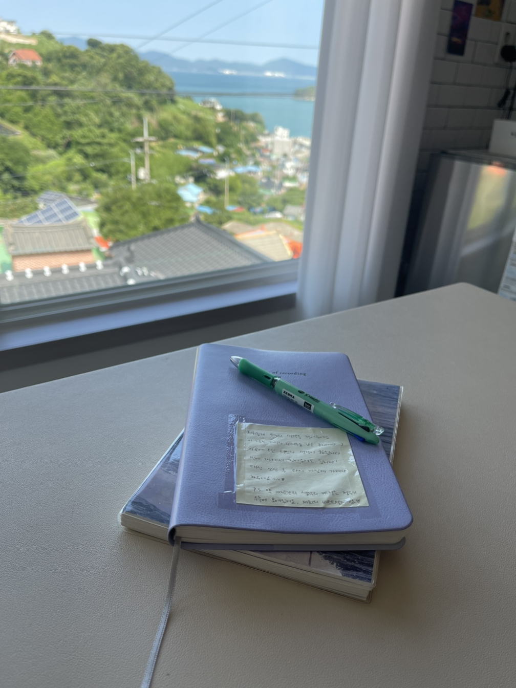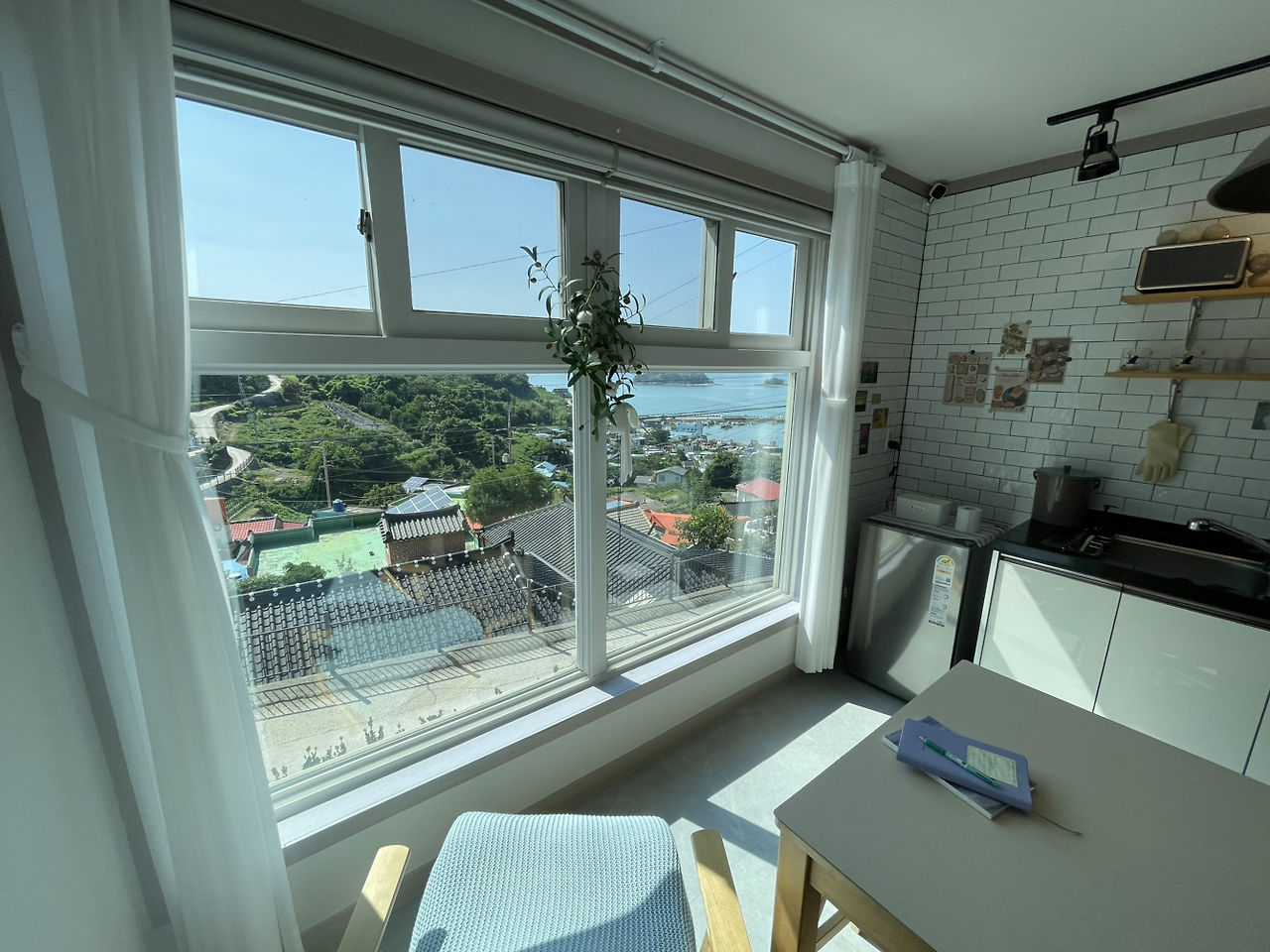호기심에 펼쳐 본 글들은 모두 아련하고, 안타깝고 따듯했다. 이렇게 조용한 게스트하우스를 다니는 분들의 여행 취향과 이야기들은 대체로 결이 비슷한 것 같다. 삶의 '추구미'가 유사하다 싶다. 먼지 한 톨 없이 깨끗한 곳에 사람들의 이야기는 켜켜이 쌓여 있는 것 같은 대비가 좋다. 여긴 참 따듯한 곳이다. 사람 느낌이 나는 곳이다. 저기 보이는 아난티 펜트하우스에서 즐기는 자본주의 휴가도 좋지만, 이런 로컬의 속살로 들어와 보내는 시간은 더 만족스럽다.