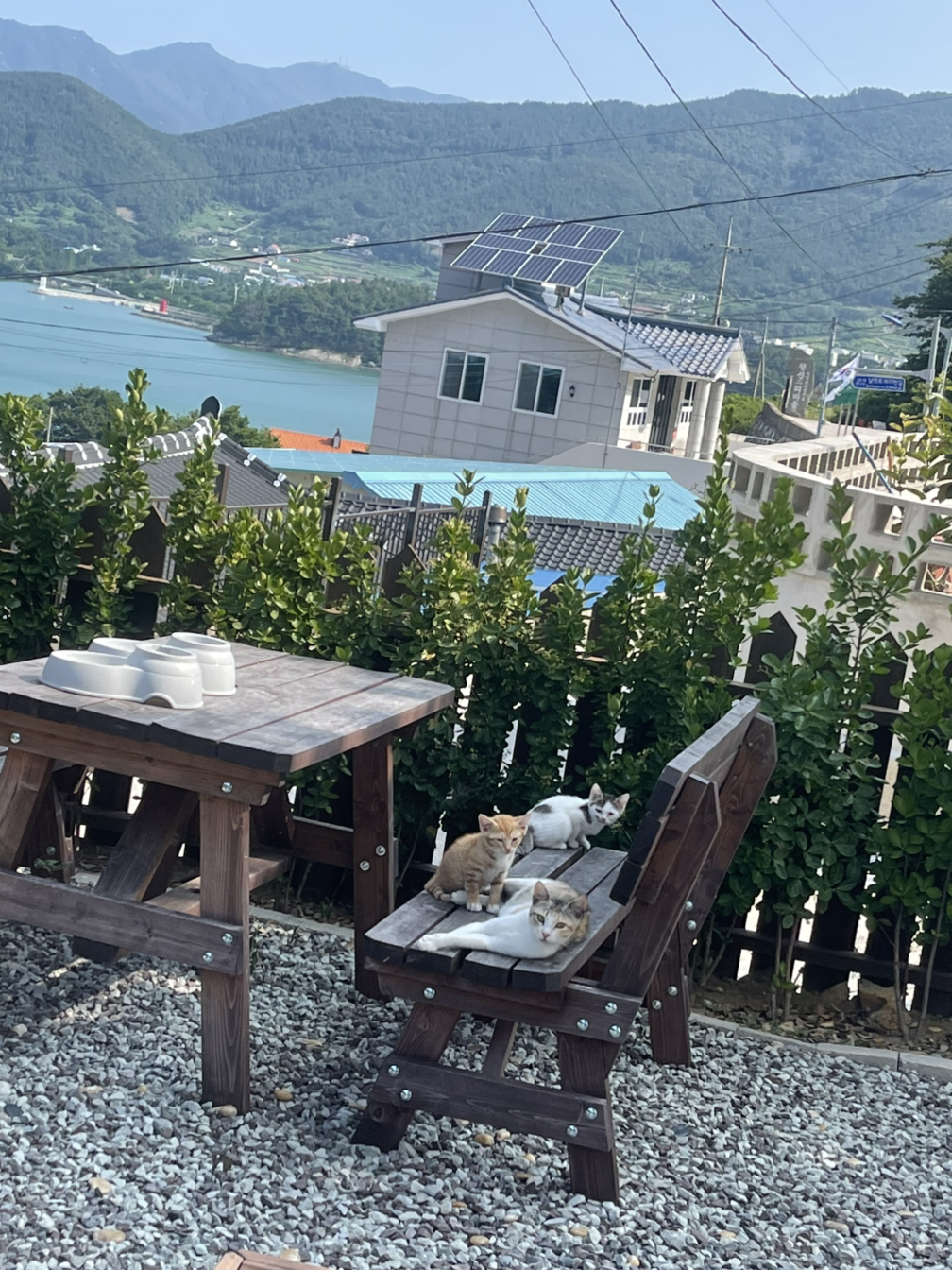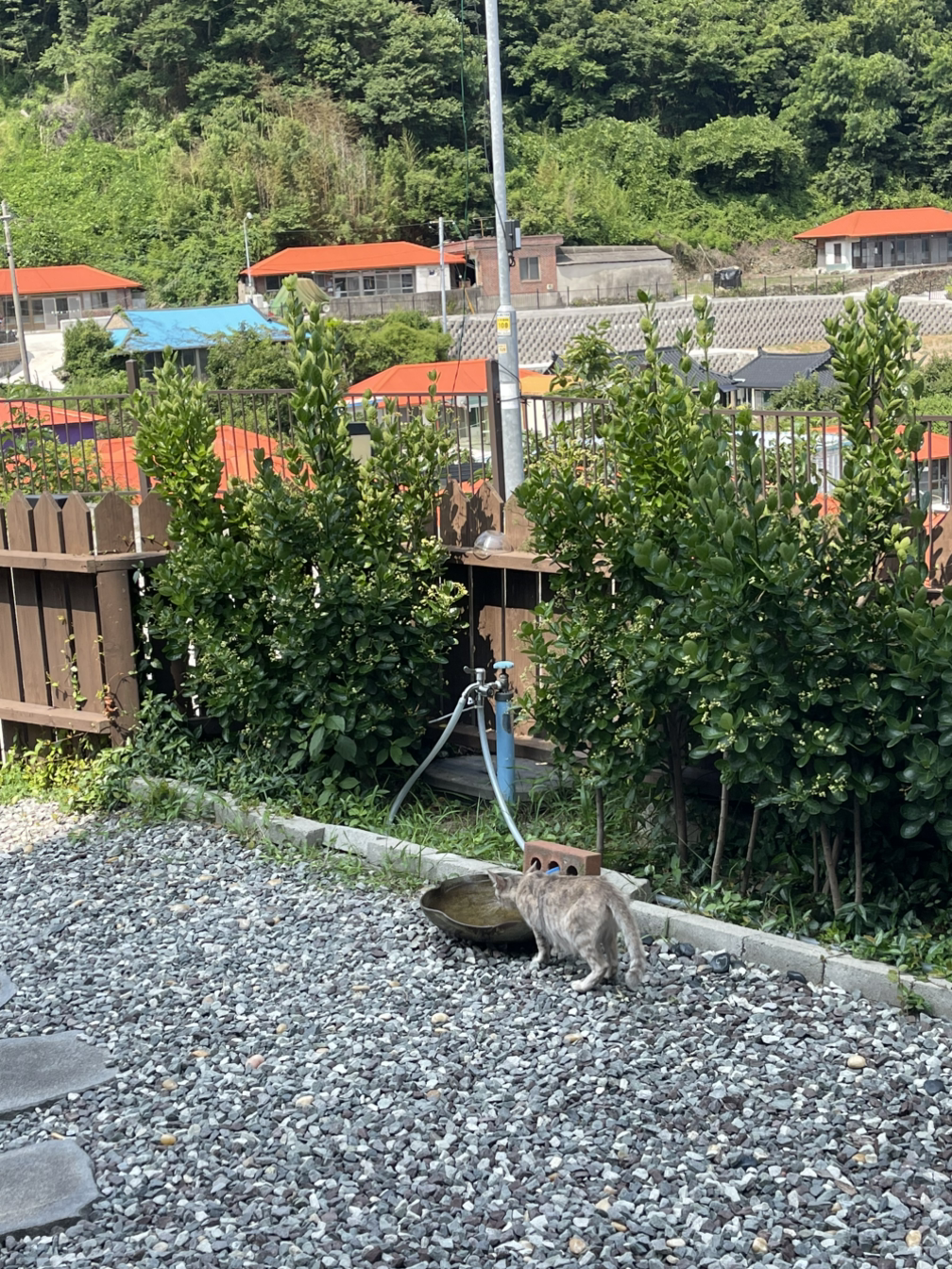 여기는 고양이 천국이다. 온화한 주인이 밥을 주고 거두어주니 동네 고양이 세 가족이 여기 둥지를 틀었단다. 새끼 고얌이들의 어설픈 움직임이 너무 귀엽다. 모든 새 생명은 어찌 이리 아름다운지. 문 앞에 모인 녀석들을 밀어내며 나들어야 한다. 익숙친 않지만 금방 적응한다. 이제 고양이들은 나의 며칠 이웃이 된다.