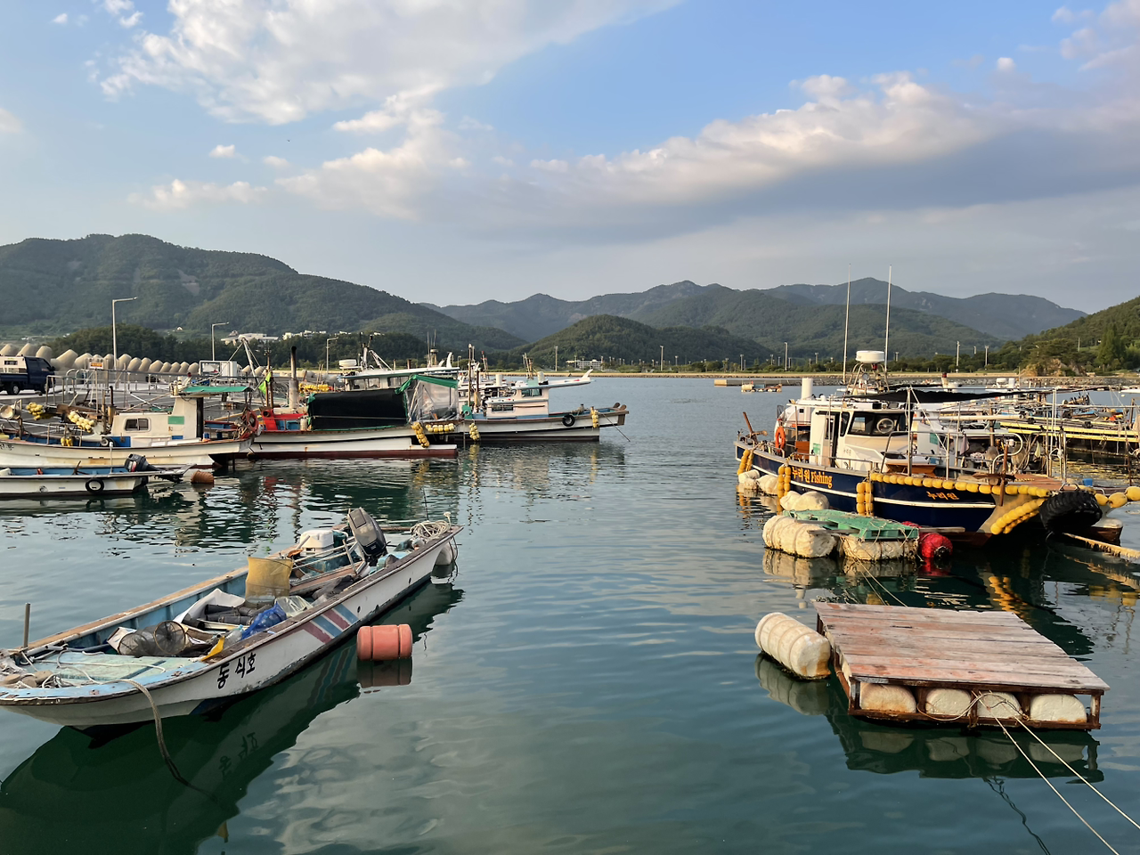 해가 뉘였 해질 즈음 귀가 길에 평산항을 들러본다. 작은 어촌 마을 그 자체다. 배 두어 개가 조업을 나가는지 통통거리며 항구를 떠난다. 횟집들이 있는데 검색해 보니 가격이 무척 비싸다. 자연산이라 그런가? 가볍게 한 끼 먹기에는 부담스러운 금액이다. 한산하고 아름답다.