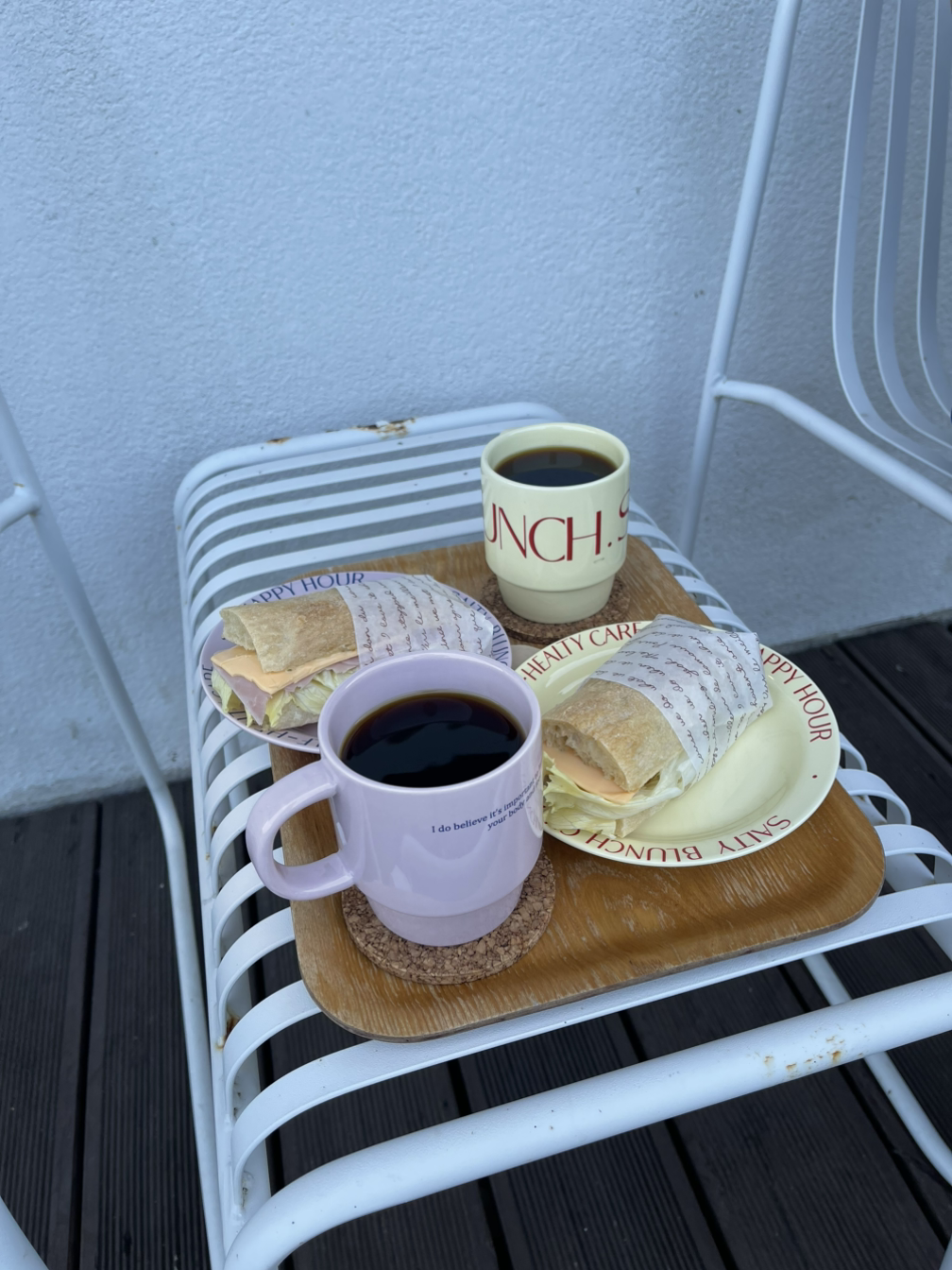 이 천 원이라는 감사한 가격에 조식을 제공한다. 그것도 한 번은 무료다. 10시 이전 희망하는 시간에 샌드위치와 커피를 준비해 준다. 이곳의 1층은 카페다. 숙소인 2층에서 내려오면 아침을 먹을 수 있다.