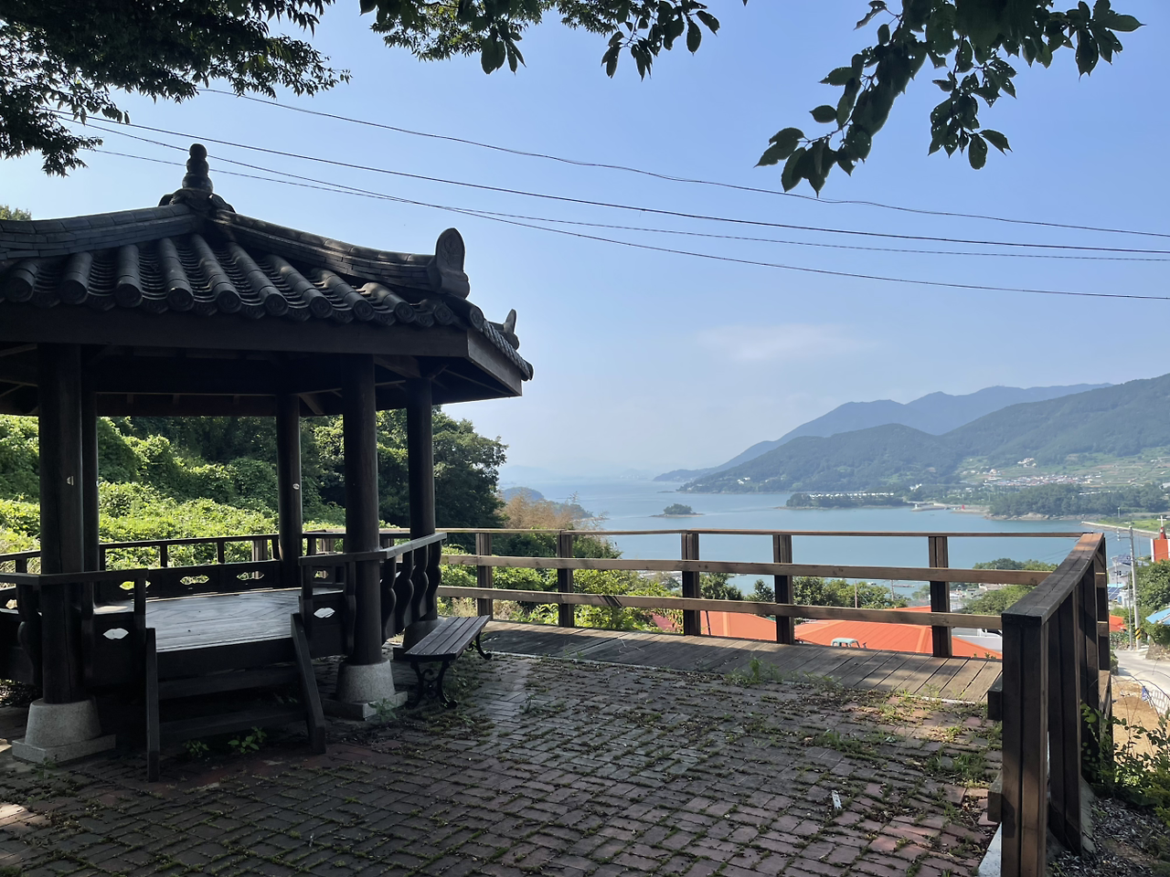 수요일에 체크인했다. 이곳 마을에서는 유유자적 한가로이 쉬는 것이 콘셉트이다. 그래서 목요일 오후엔 이 동네 머물며 하루를 보내본다. 마을 정상에 전망 좋은 근사한 정자가 있어 쉬기 좋다. 돗자리를 깔고 시원한 바람을 맞으며 오후 시간을 한가하게 보낸다. 에어컨 밑만큼 시원하진 않지만 도시의 찜통 같은 열기는 없으니 살만하다. 눈이 시원하니 몸도 조금은 덜 더워하는 것 아닐까.