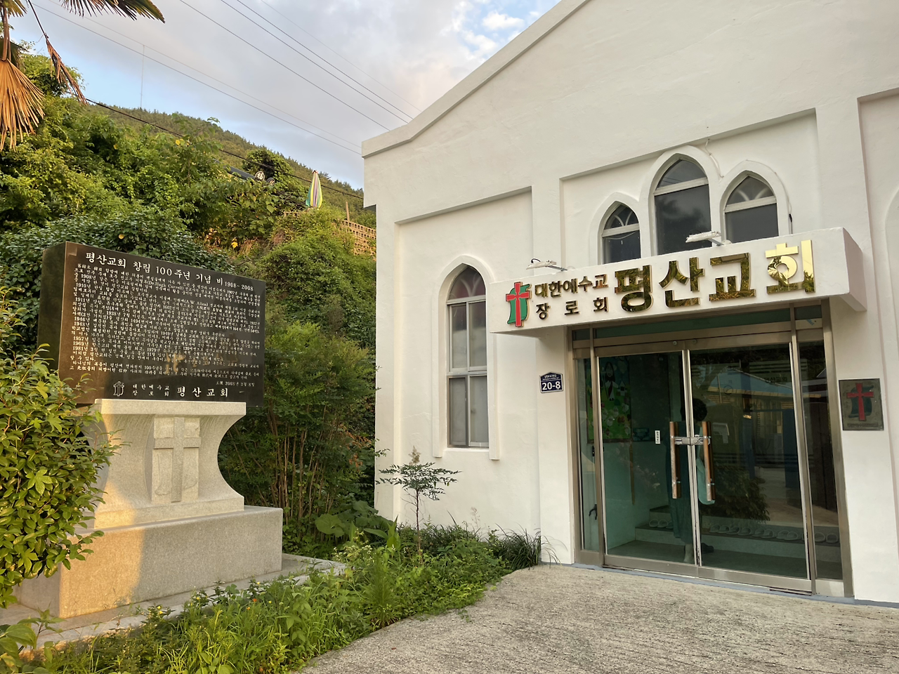 마을 높은 곳에 오래되어 보이는 교회가 있다. 숙소의 옆옆이다. 이런 시골 교회들은 항상 정겹다. 수요일이라 평산항 산책 후 올라와 수요예배가 있는지 확인해 보니 8시부터 예배가 있다. 숙소로 가서 조금 휴식하다가 교회로 갔다.