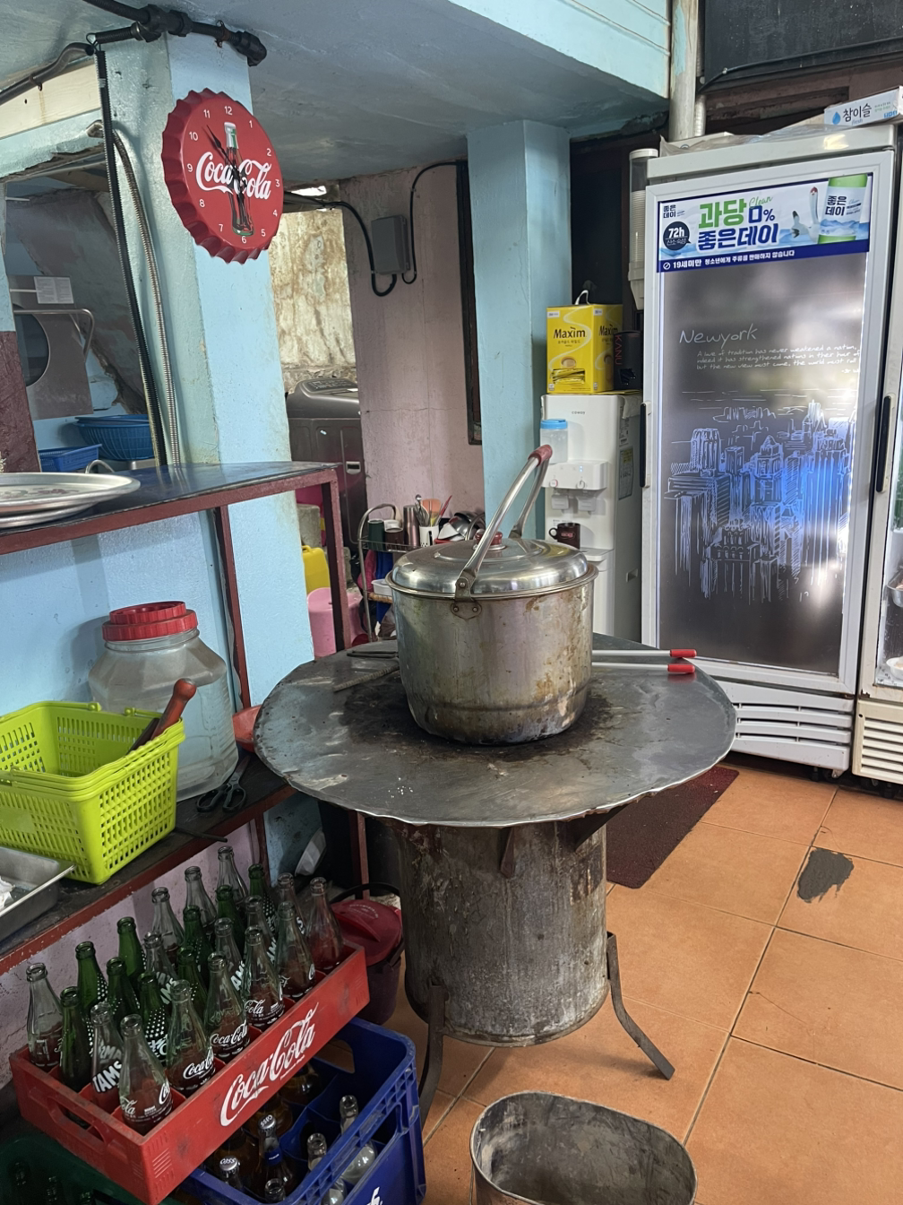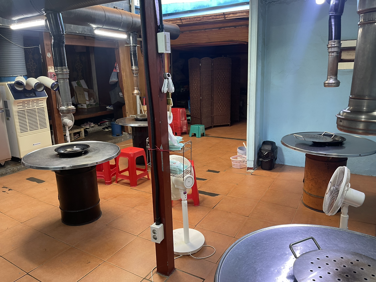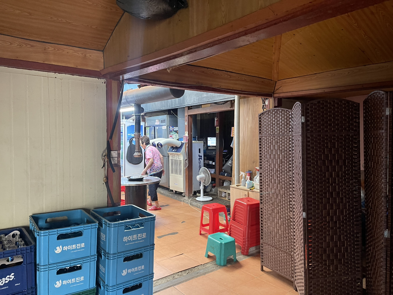 허름한 노포를 좋아하지만, 여기는 지금까지 가본 노포 중 거의 최고 수준의 남루한 분위기다. 쓰러져가는 옛날 가옥 중정 지붕을 막아 비를 피했는데 틈새들이 숭숭해서 보온 보냉은 기대하기 어렵다.